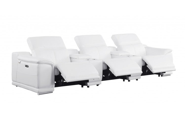 9762 DivanItalia White 5-Piece Modular Power Reclining Sofa – Top Grain Italian LeatherModel:  9762-WHITE-5.3-HT