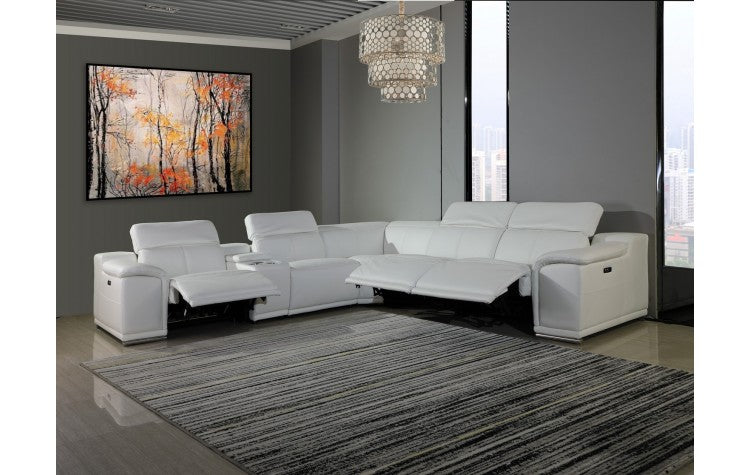9762 DivanItalia White 6-Piece Sectional with 3 Power Recliners and 1 Console – Top Grain Italian LeatherModel:  9762-WHITE-3PWR-6PC