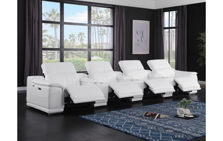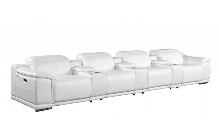 9762 DivanItalia White 7-Piece Modular Power Reclining Sofa – Top Grain Italian LeatherModel:  9762-WHITE-S-7.4-HT