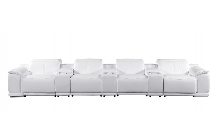 9762 DivanItalia White 7-Piece Modular Power Reclining Sofa – Top Grain Italian LeatherModel: 9762-WHITE-S-7.4-HT