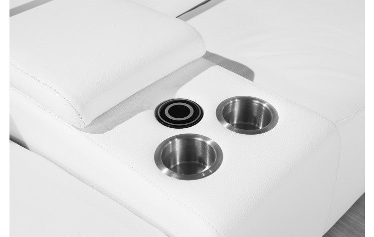 9762 DivanItalia White 7-Piece Sectional with 4 Power Recliners and 1 Console – Top Grain Italian LeatherModel: 9762-WHITE-4PWR-7PC