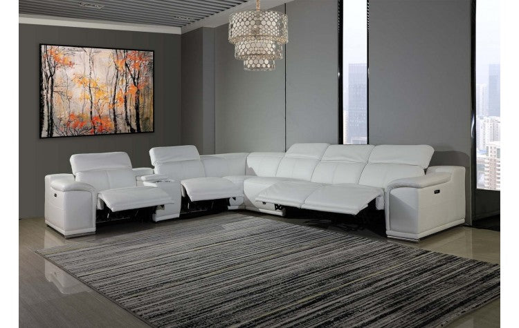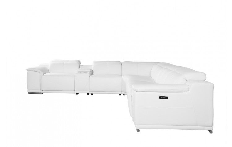 9762 DivanItalia White 7-Piece Sectional with 4 Power Recliners and 1 Console – Top Grain Italian LeatherModel:  9762-WHITE-4PWR-7PC