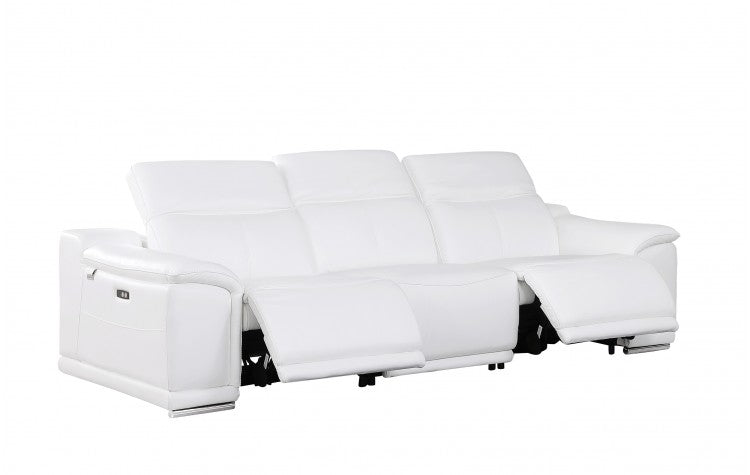 9762 DivanItalia White Top Grain Italian Leather Power Reclining Sofa with Dual ReclinersModel: 9762-WHITE-3.2-S-HT