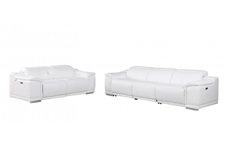 9762 DivanItalia White Modular Power Reclining Sofa and Loveseat Set in Top Grain Italian LeatherModel:  9762-WHITE-5.4-HT-2PC