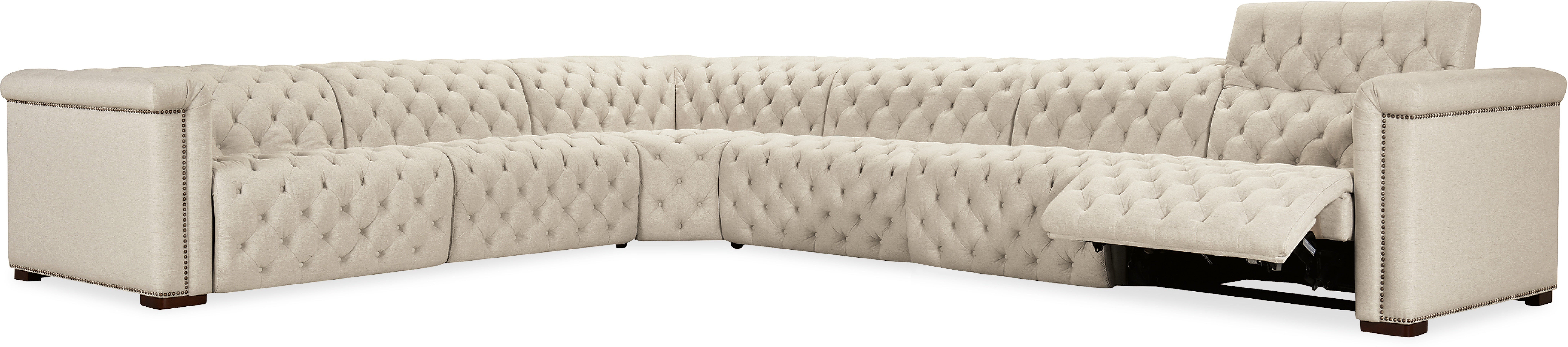 Hooker Furniture Living Room Savion Deux 6 Seat Sectional with Three Power Recliners and Seven Power Headrests