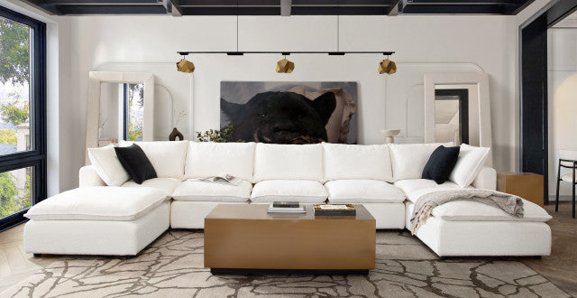 Ivy 7-Piece Dual Chaise Sectional in White Faux Shearling By Diamond Sofa