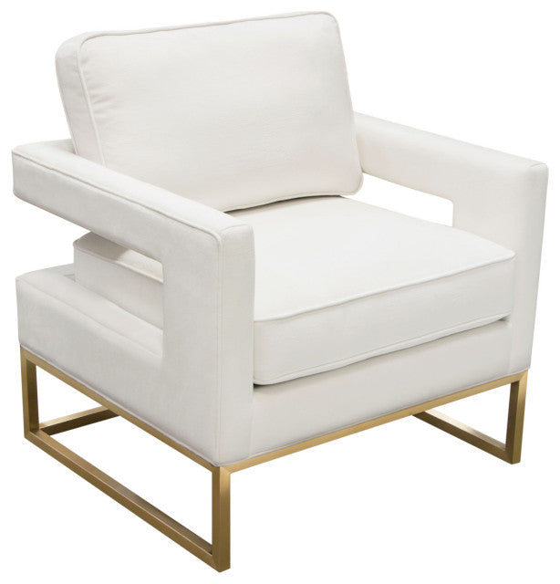 Lake Accent Chair, White Performance Fabric, Gold Metal Base By Diamond Sofa