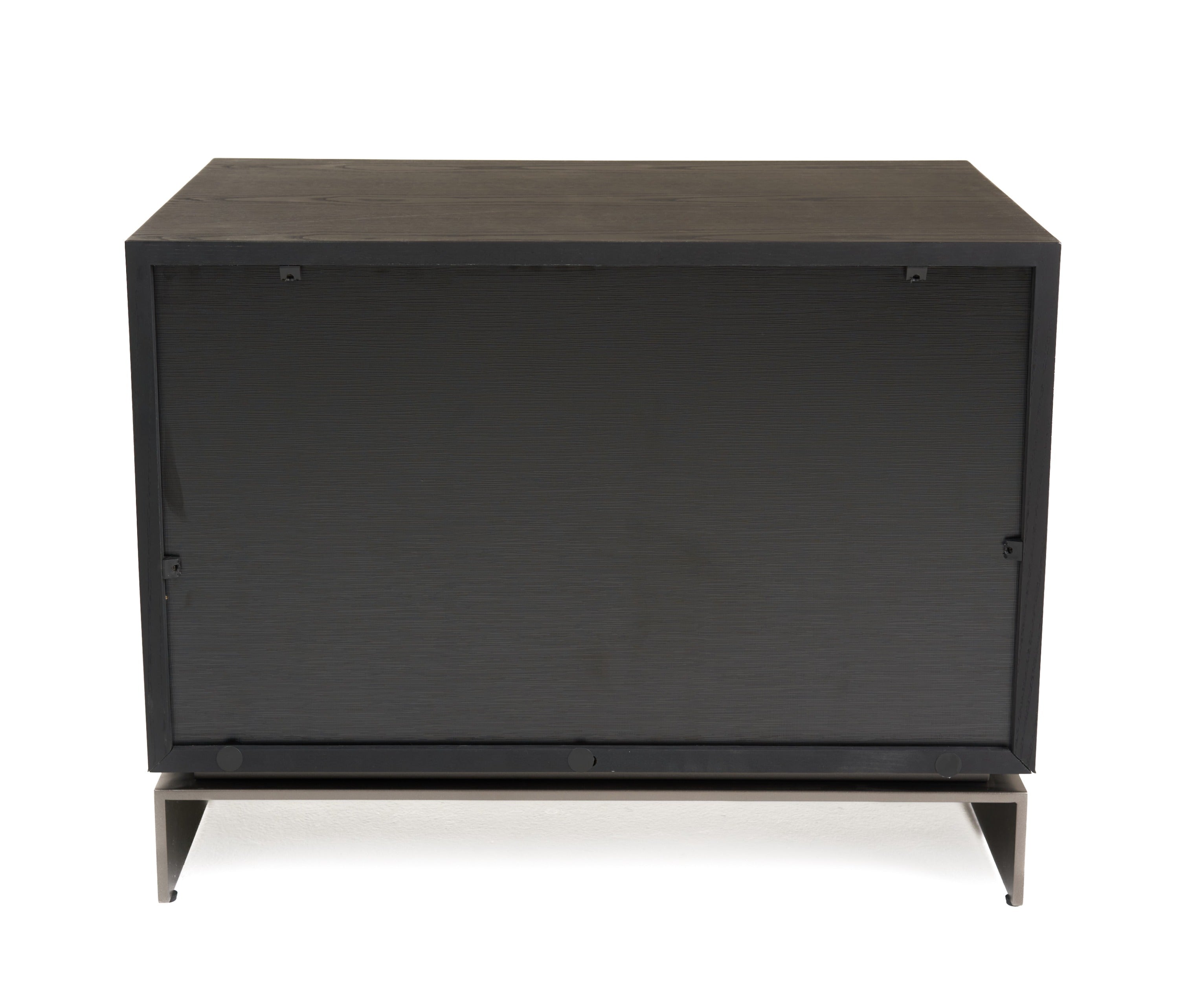 The Lamod Cirque Modern Black Ash Nightstand exudes contemporary elegance with its sleek design and textured finish. Its two spacious drawers feature a unique circular pattern, offering both style and functionality. The nightstand is supported by minimalist metal legs, adding a touch of sophistication. Ideal for modern bedrooms, it provides an eye-catching focal point while ensuring easy access to essentials. The rich black ash color complements a variety of decor styles, making it a versatile addition to any interior space.