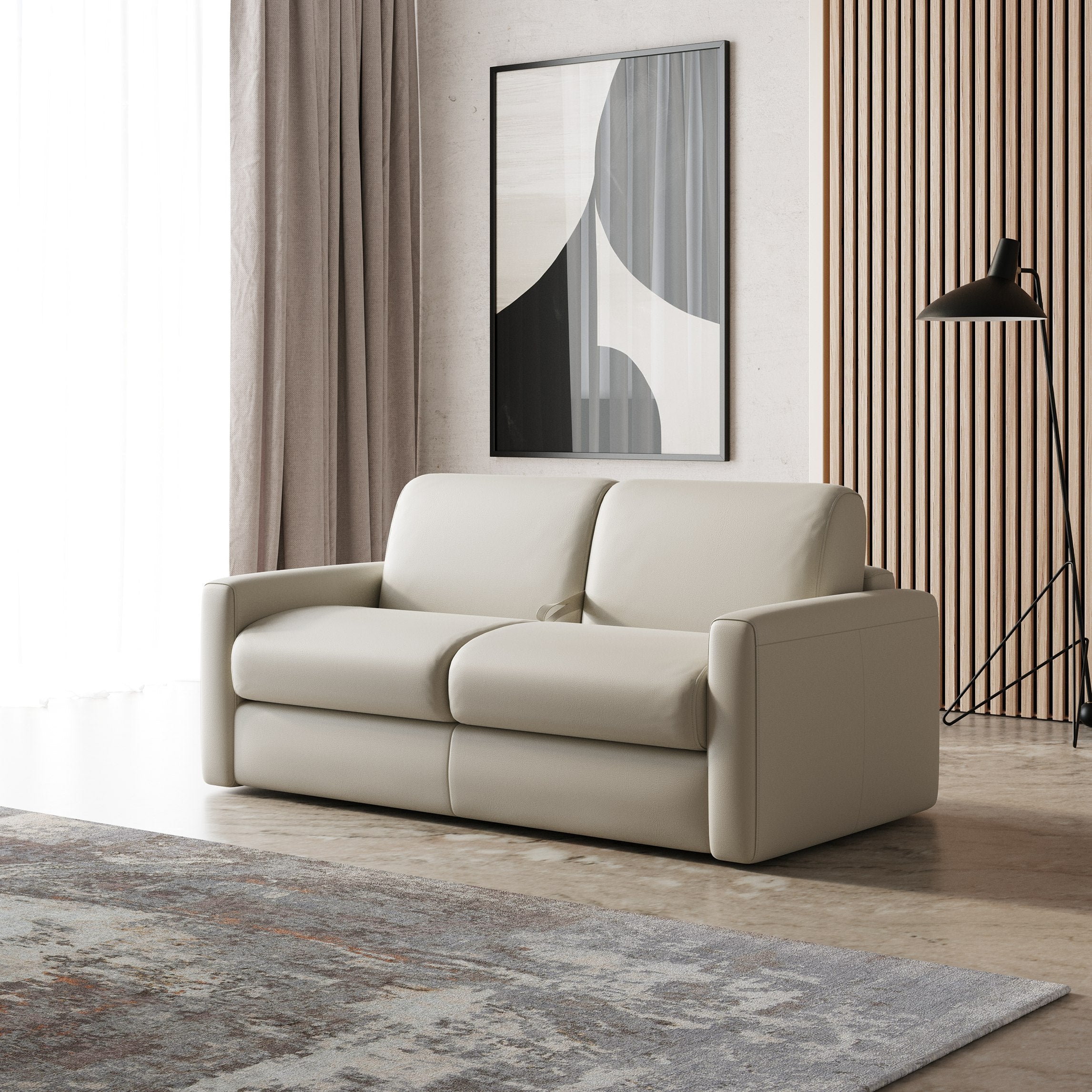 Nothing is better than knowing your overnight guests will be comfortable on our full sleeper! The LAMOD Italia Revers Sofa Bed is a traditional style sofa featuring square arm, pocket spring & foam seating and beautiful light grey leather upholstery. The sleeper mattress is easily accessible with a pull tag from the center and folds outward to a full size mattress, supported by a metal frame. This sofa is sure to be the finishing touch to make your house feel like a home!