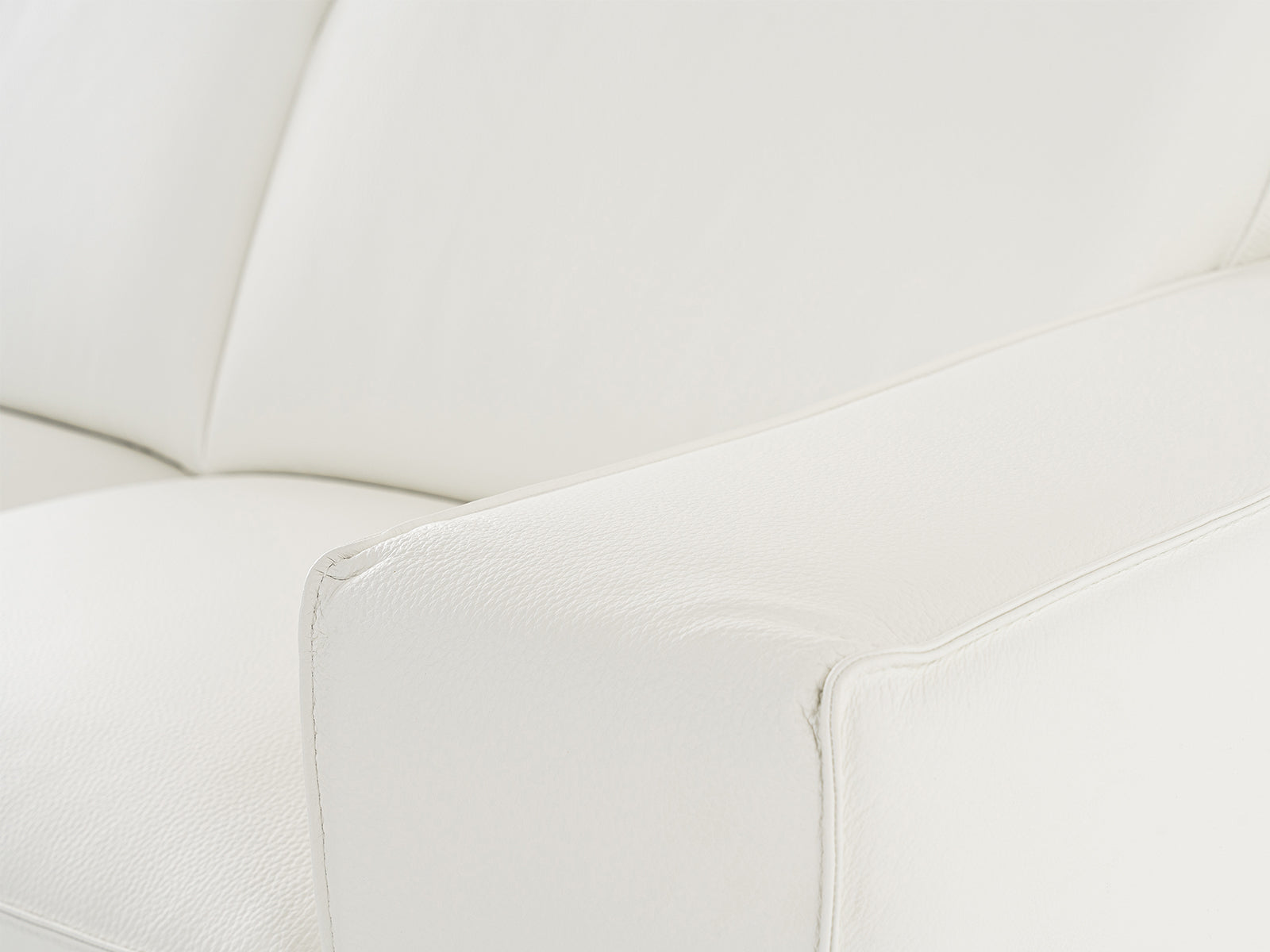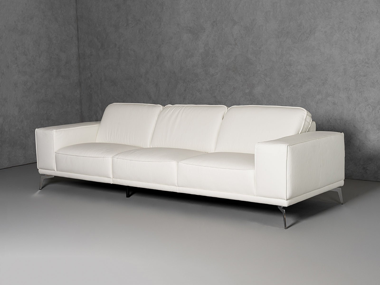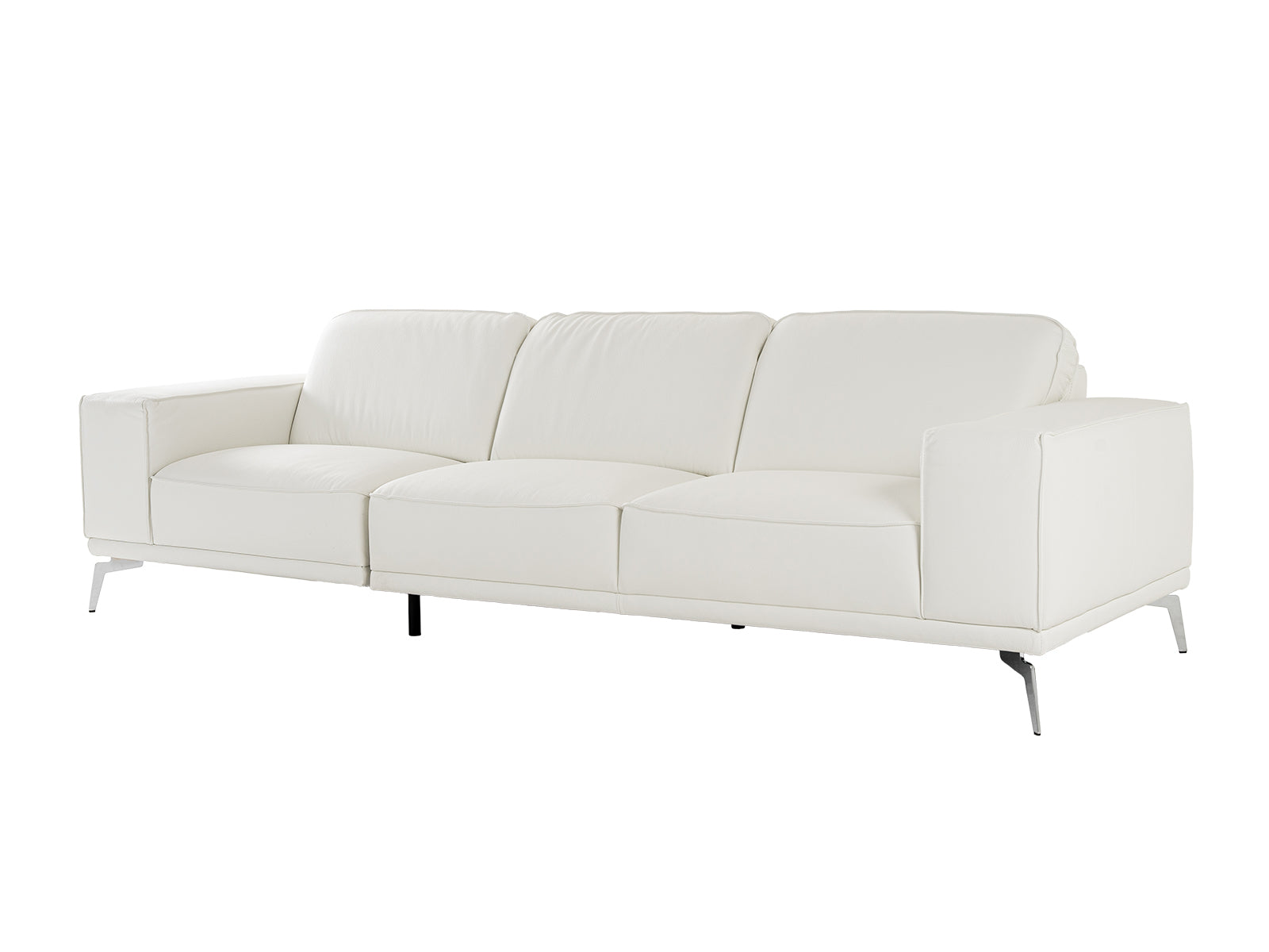 Introducing the Lamod Italia Soho Italian White Leather Sofa, a stunning centerpiece for any modern living space. Its clean lines and minimalist design exude sophistication, while the plush cushions provide exceptional comfort. Upholstered in luxurious white leather, this sofa effortlessly blends style and elegance. The sleek metal legs add a contemporary touch, elevating its aesthetic appeal. Perfect for lounging or entertaining, the Soho sofa is a versatile addition that complements various interior styles. Embrace modern luxury with this eye-catching piece.
