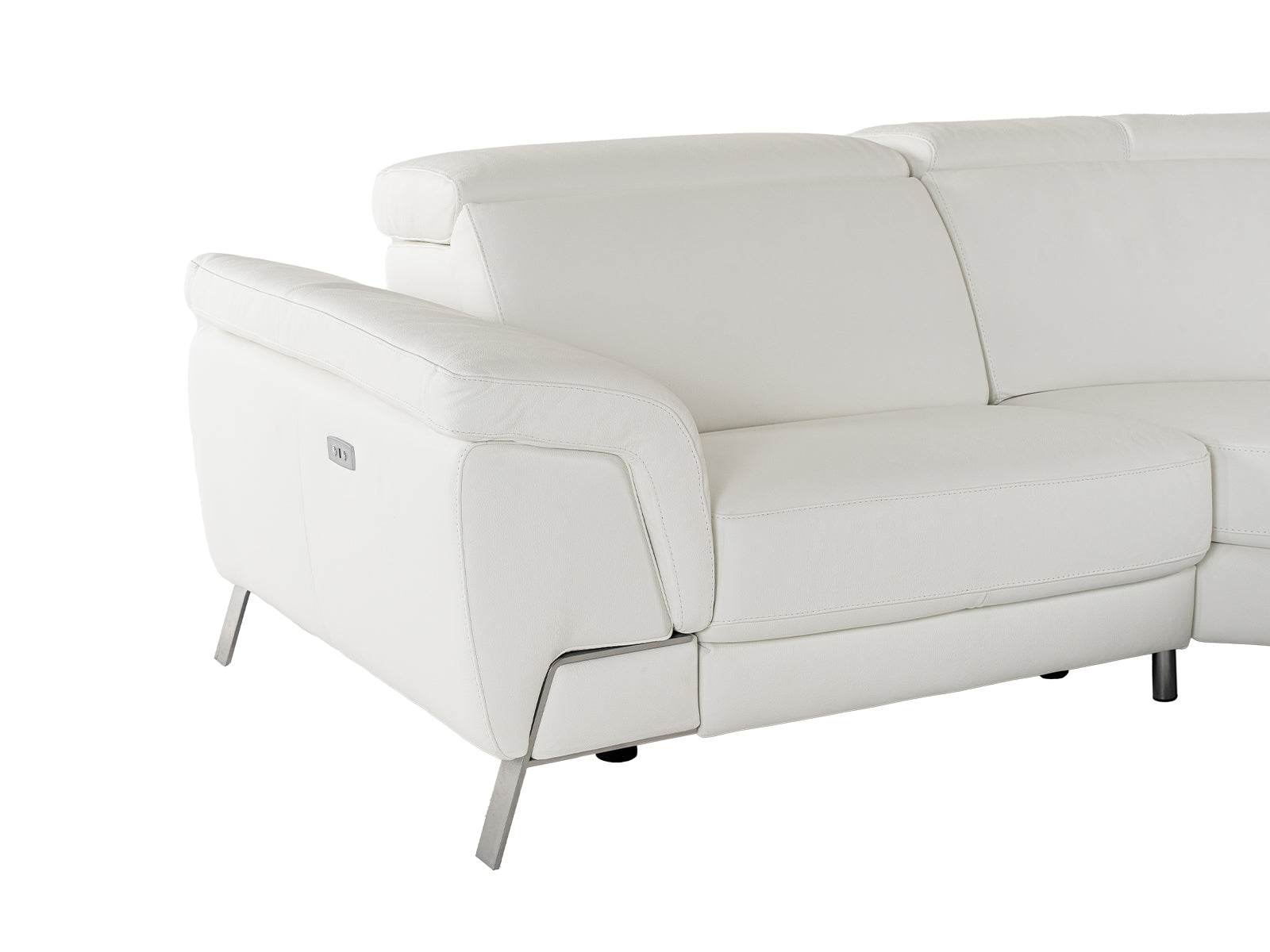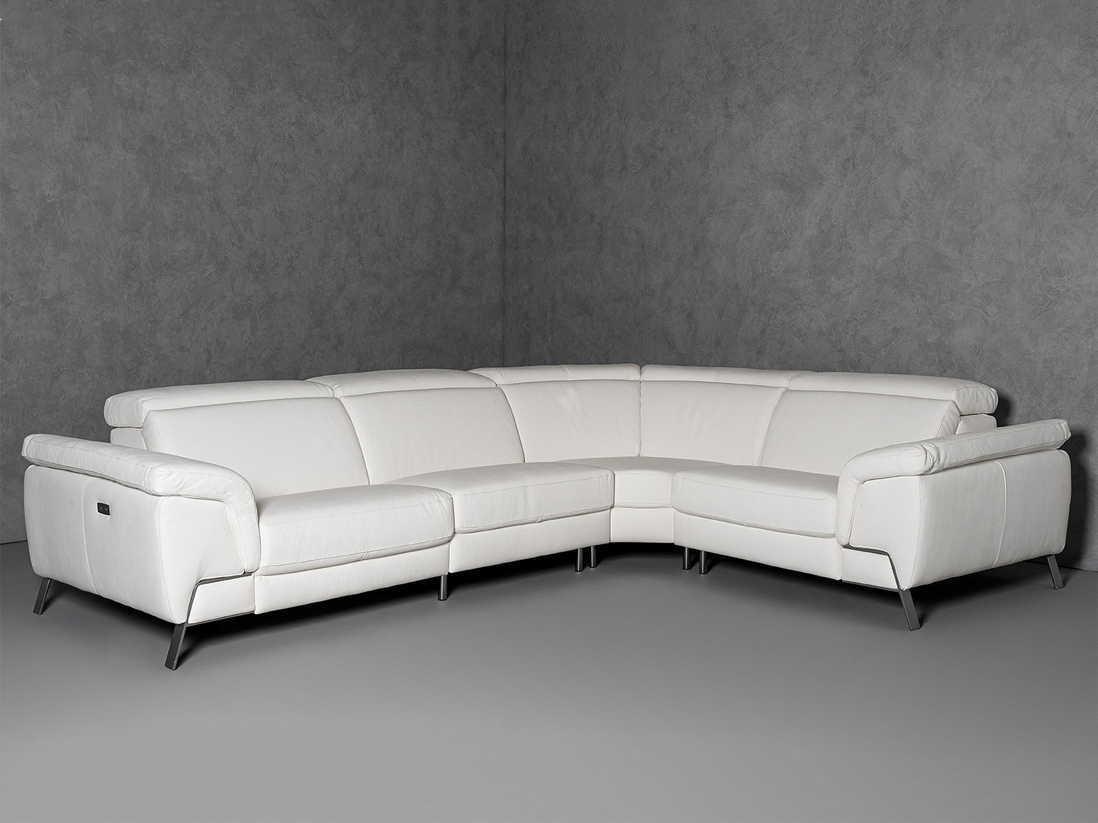 The Lamod Italia Wonder sectional sofa exudes modern elegance with its sleek design and luxurious white leather upholstery. Featuring plush seating and built-in recliners, it offers both comfort and style for any contemporary living space. The clean lines and minimalistic form are complemented by stylish metal legs, enhancing its sophisticated aesthetic. Its spacious layout invites relaxation and social interaction, making it a perfect centerpiece for gatherings. This sectional sofa embodies the essence of Italian craftsmanship, blending functionality with a chic, modern allure.