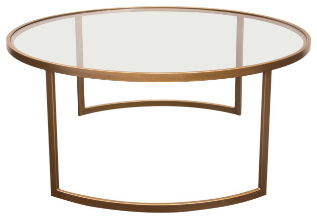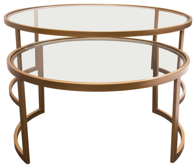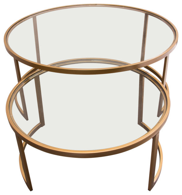 Lane 2PC Round Nesting Set in Brushed Gold Frame Clear Tempered Glass Tops By Diamond Sofa