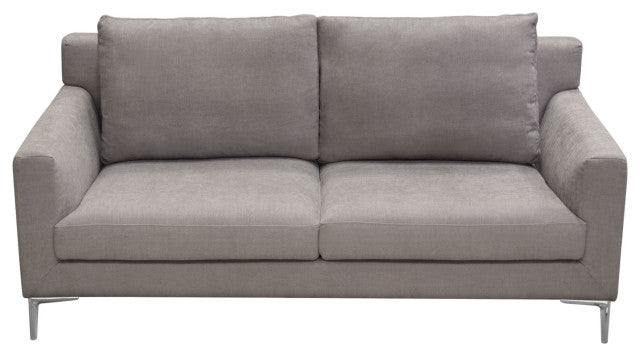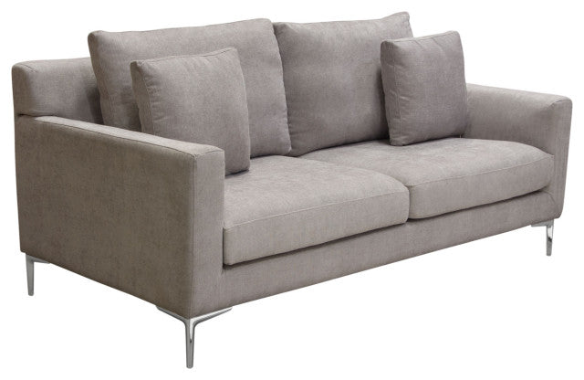Loose Back Loveseat, Grey Polyester Fabric With Polished Silver Metal Leg By Diamond Sofa