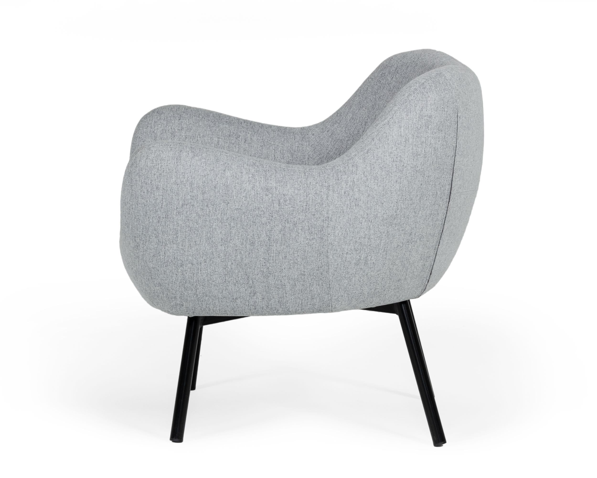The Peyton Accent Chair is a bulbous wingback style chair that works perfectly in a mid-century or modern home. The grey linen fabric encompasses the rounded retro chair. Tapered black metal legs finish off this gorgeous piece.