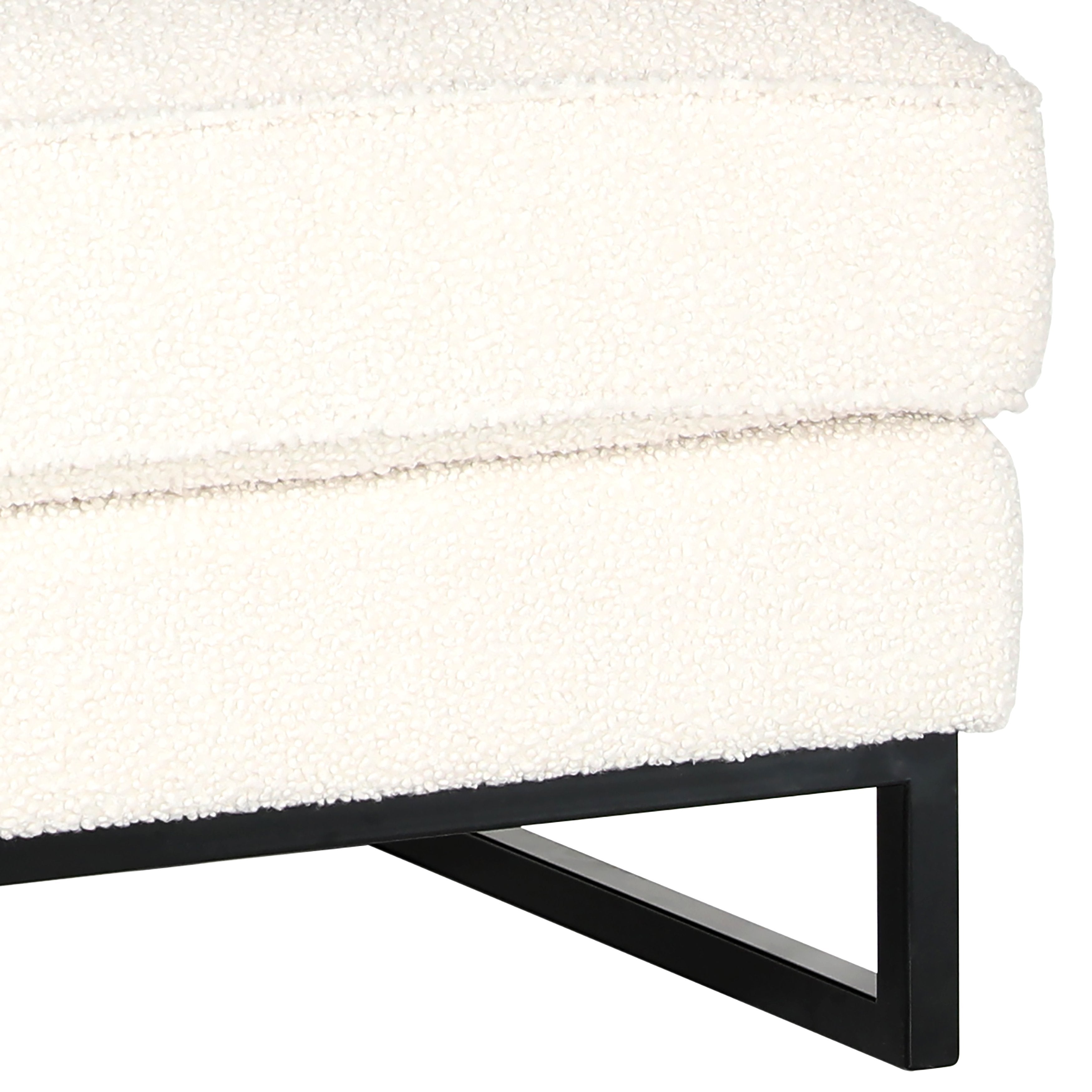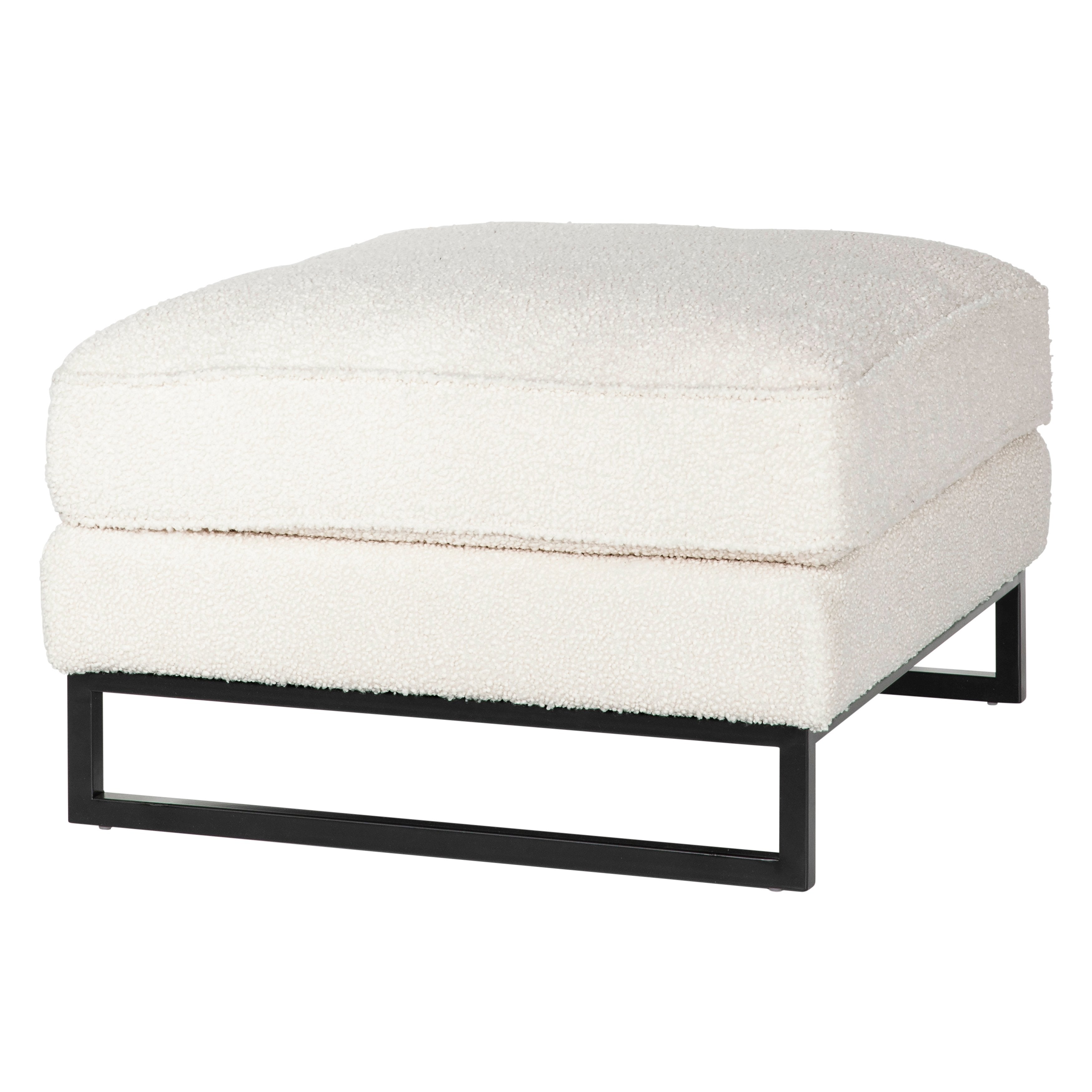 Lynette White Upholstery and Black Metal Base Ottoman