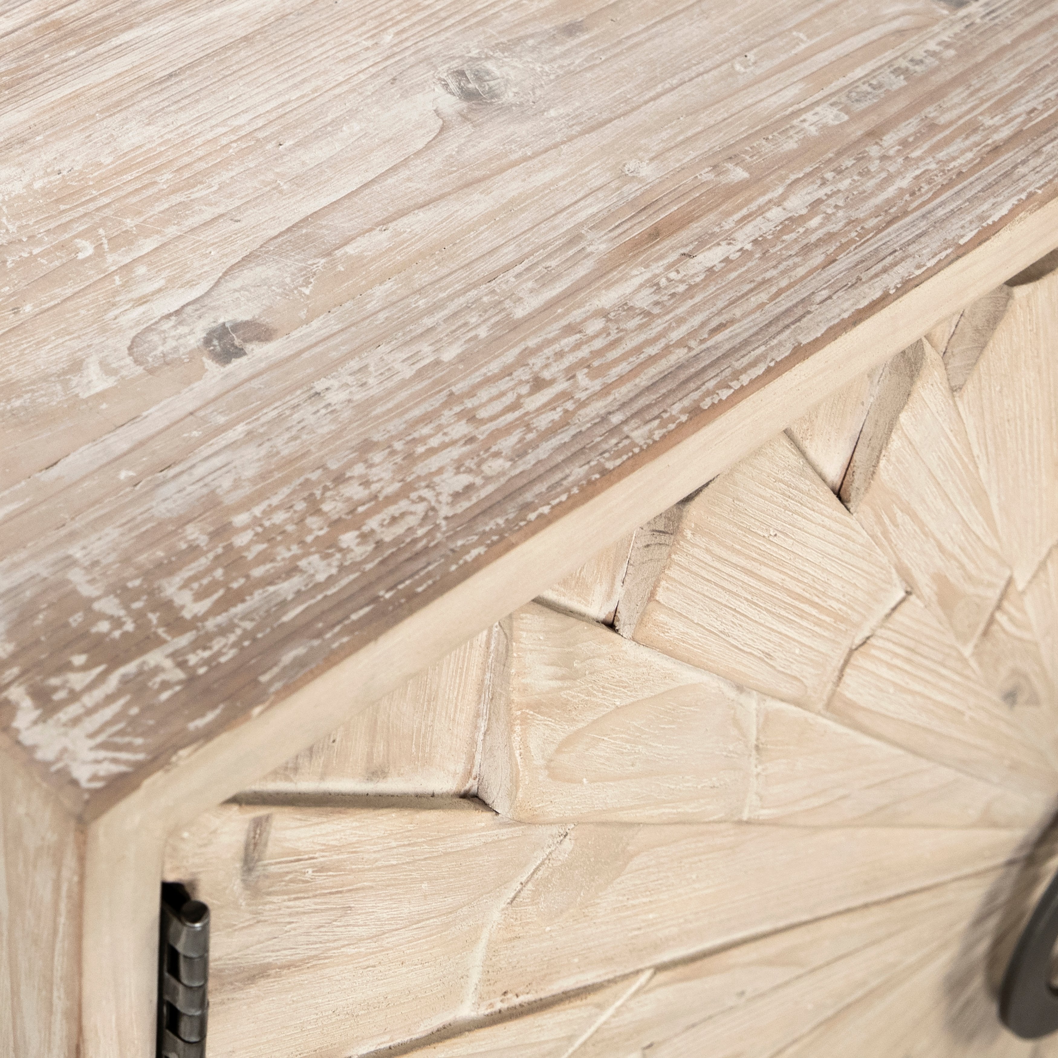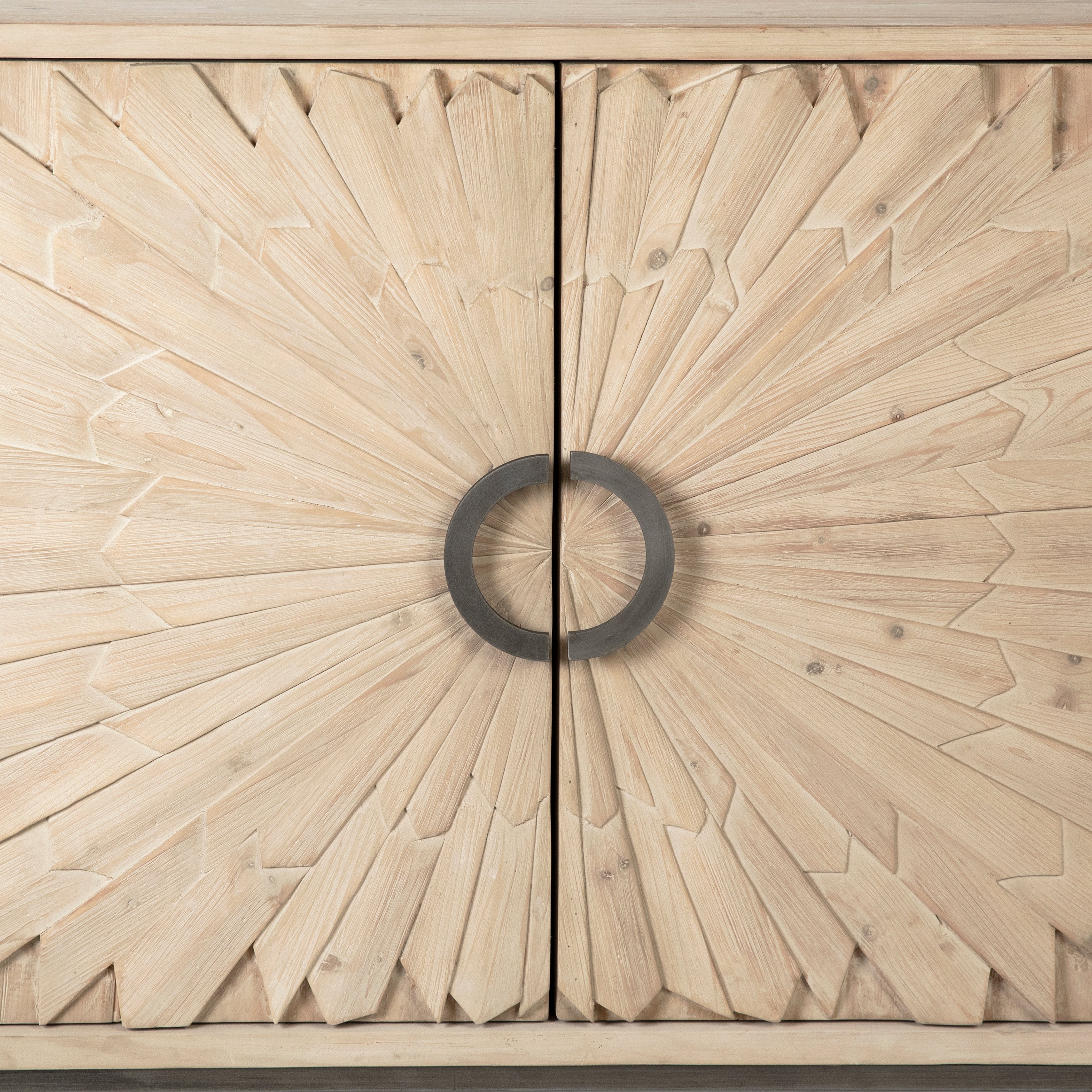 Mabari Light Warm Wash Finish and Antique Silver Iron Sideboard