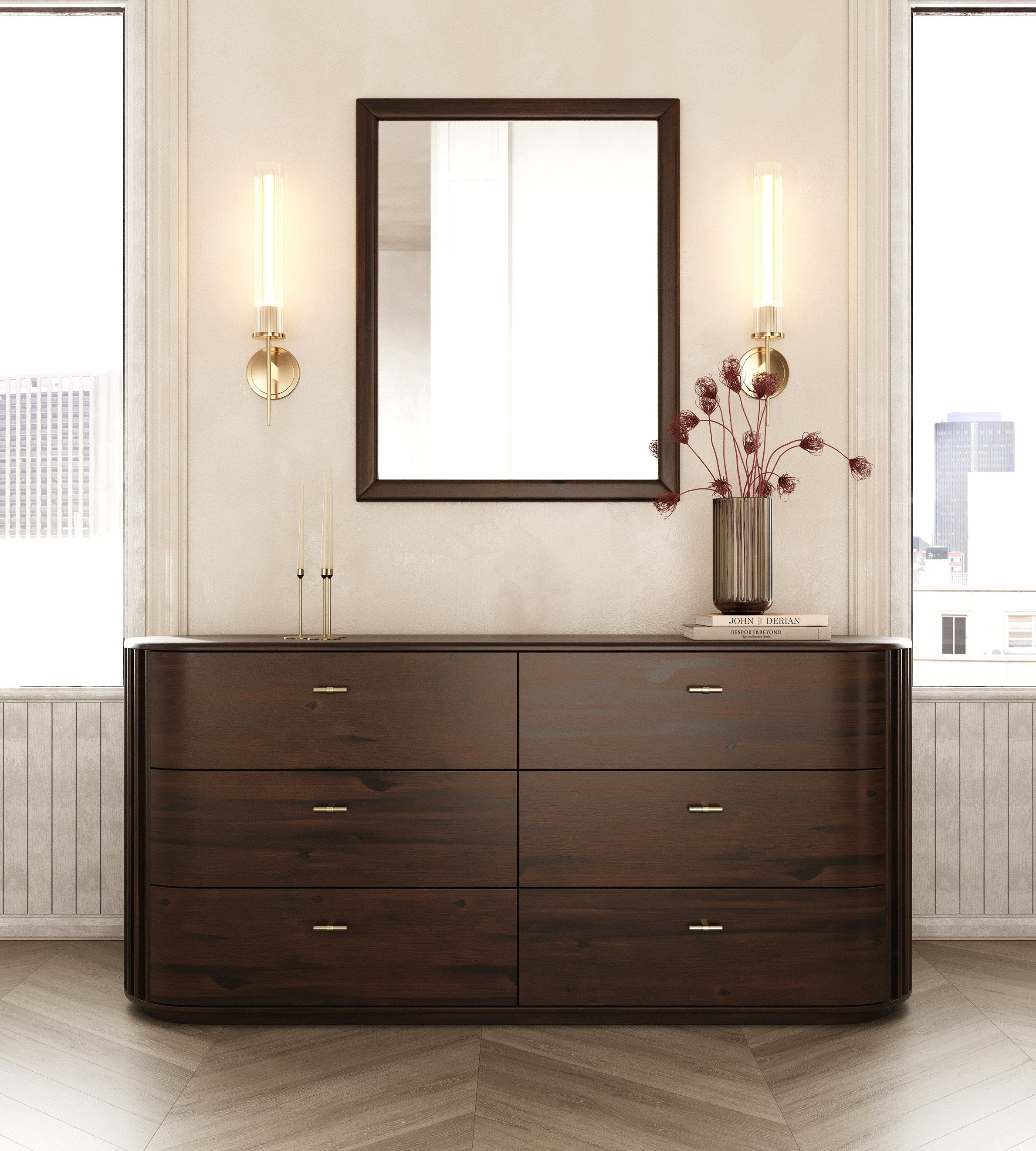 This is a Beautiful and Quality Modrest Fields Modern Walnut Acacia Mirror Model VGWD-VGD3-MIR-WAL