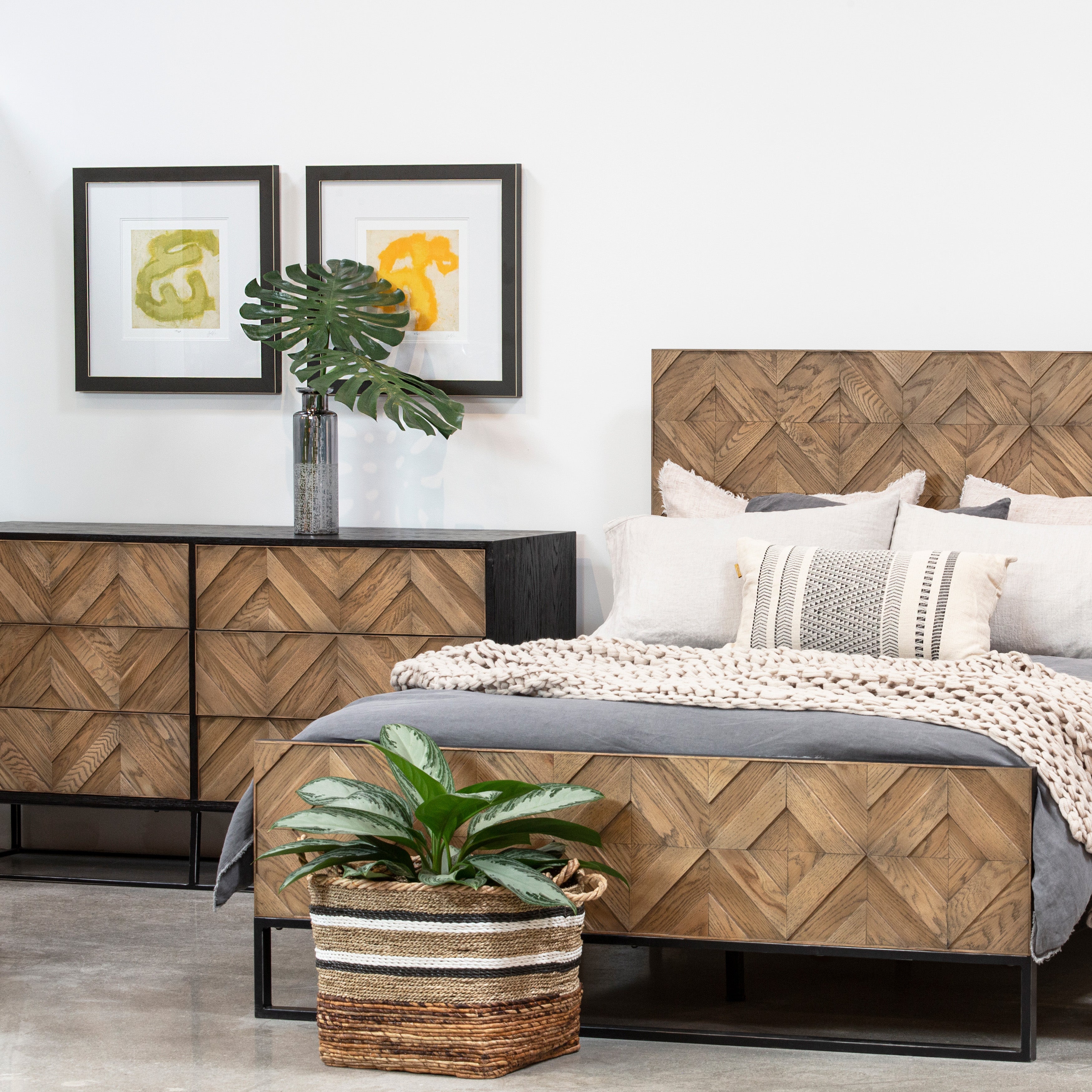 Modena Medium Brown Natural Wood Finish and Black Base Dresser