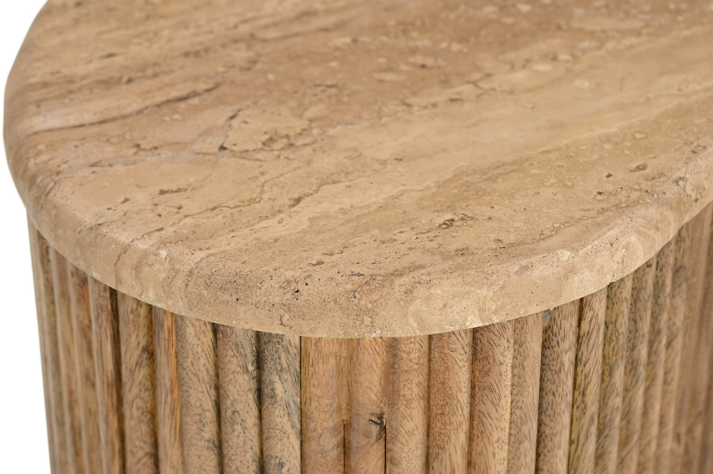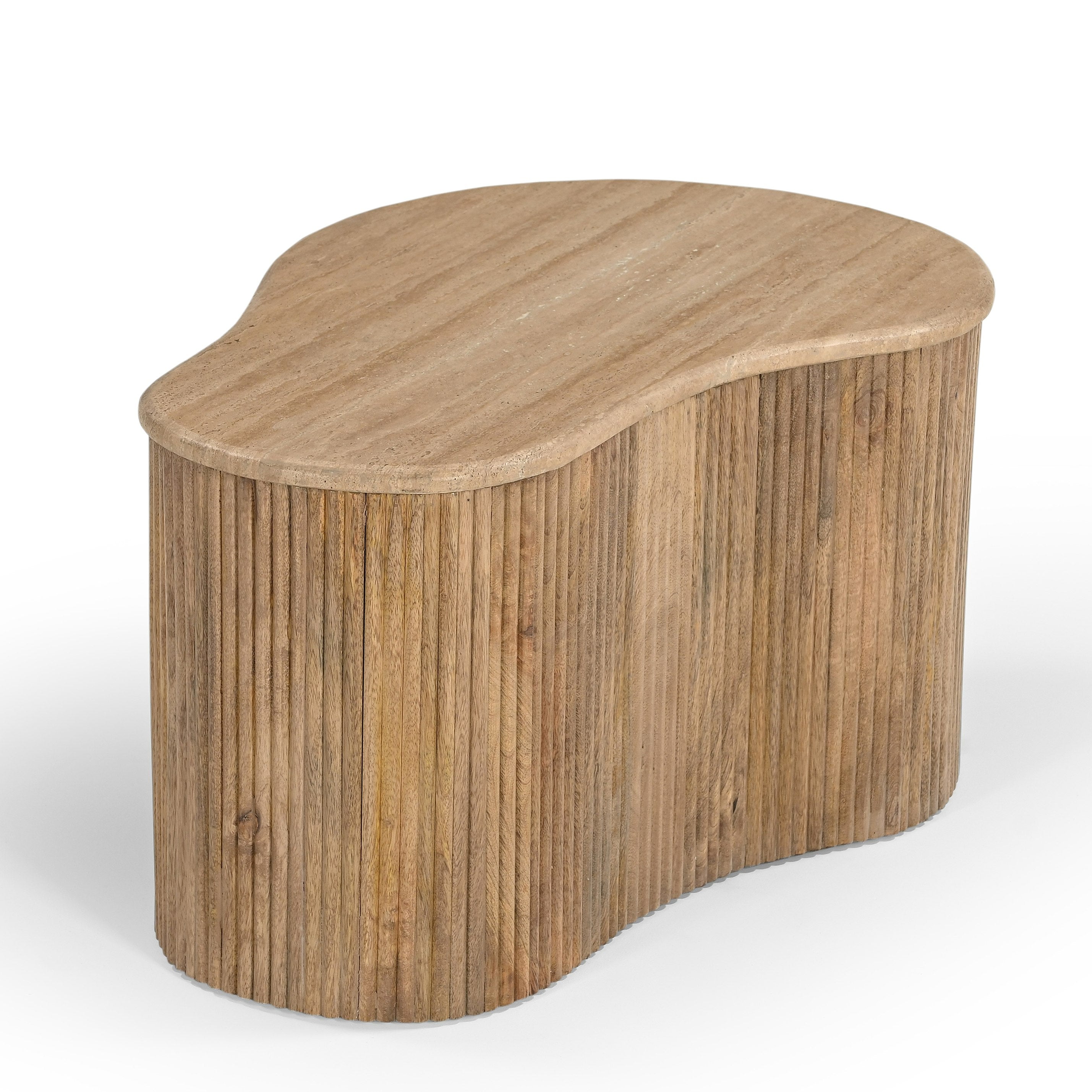 The Modern Matador Coffee Table Set features a stunning combination of travertine marble and wood, showcasing an organic freeform design. Each piece in this trio exhibits a unique, sculptural silhouette that adds elegance to any living space. The textured wood base adds warmth and contrast to the smooth stone surfaces, creating a perfect blend of natural materials. This set not only serves a functional purpose but also acts as a striking centerpiece, enhancing the overall aesthetic of your decor.