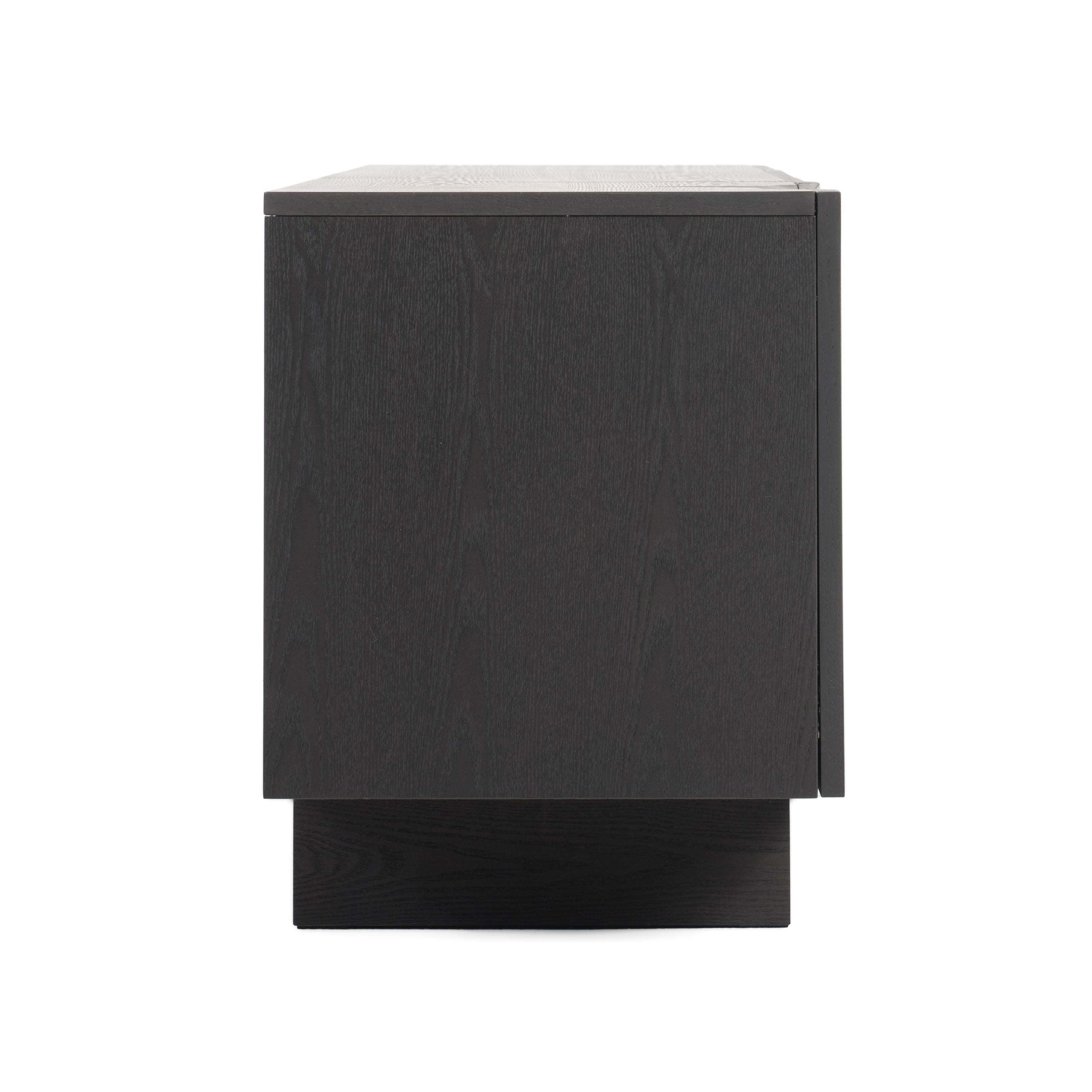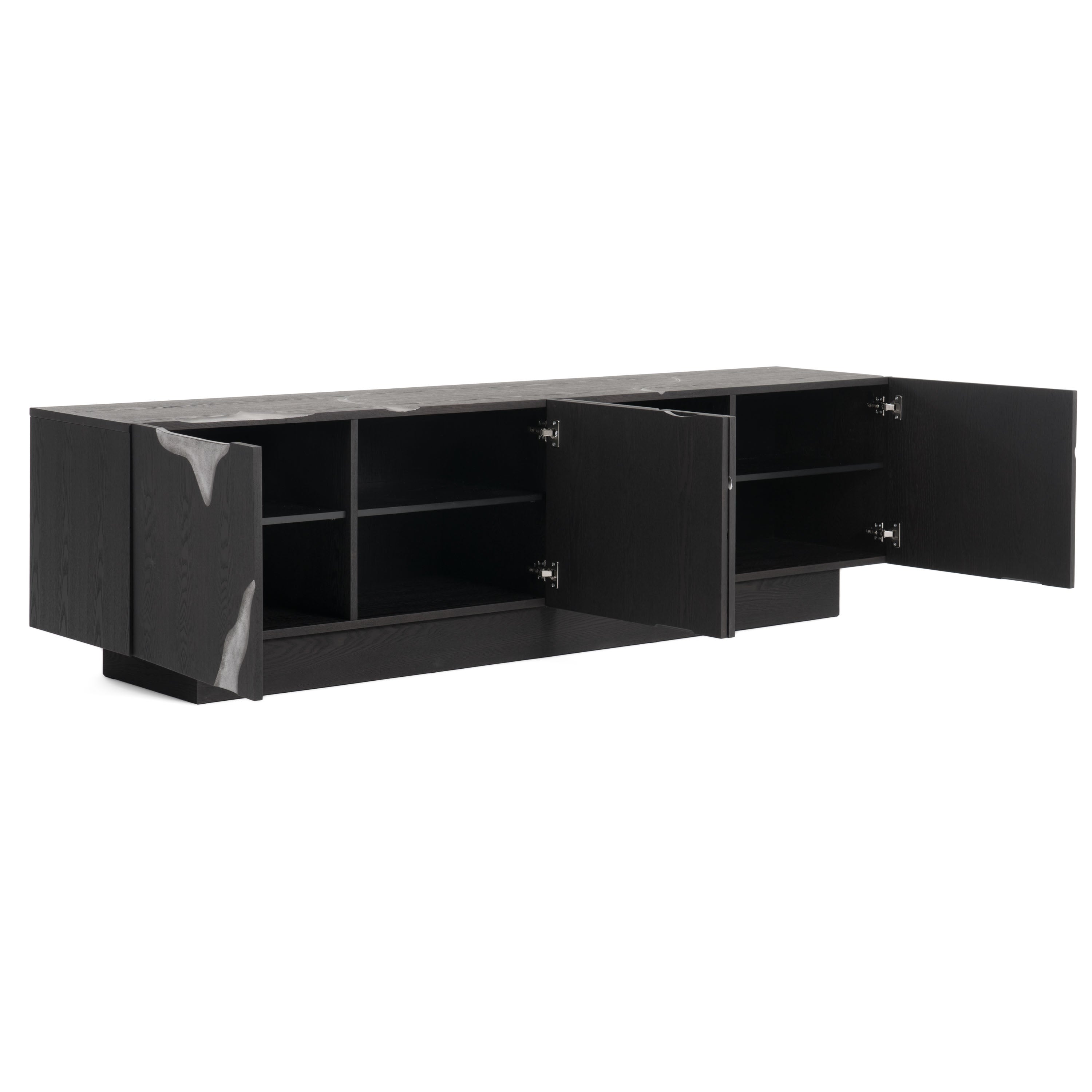 The Aspen Matte Brown and Silver TV Stand is a gorgeous modern piece that is sure to wow all of your guests. Matte brown finishes the top and sides of this gorgeous piece while peeks of silver painted veins are inset into this finish to create contrast and visual interest. Four doors reveal interior shelves that house any number of electronics items for you.
