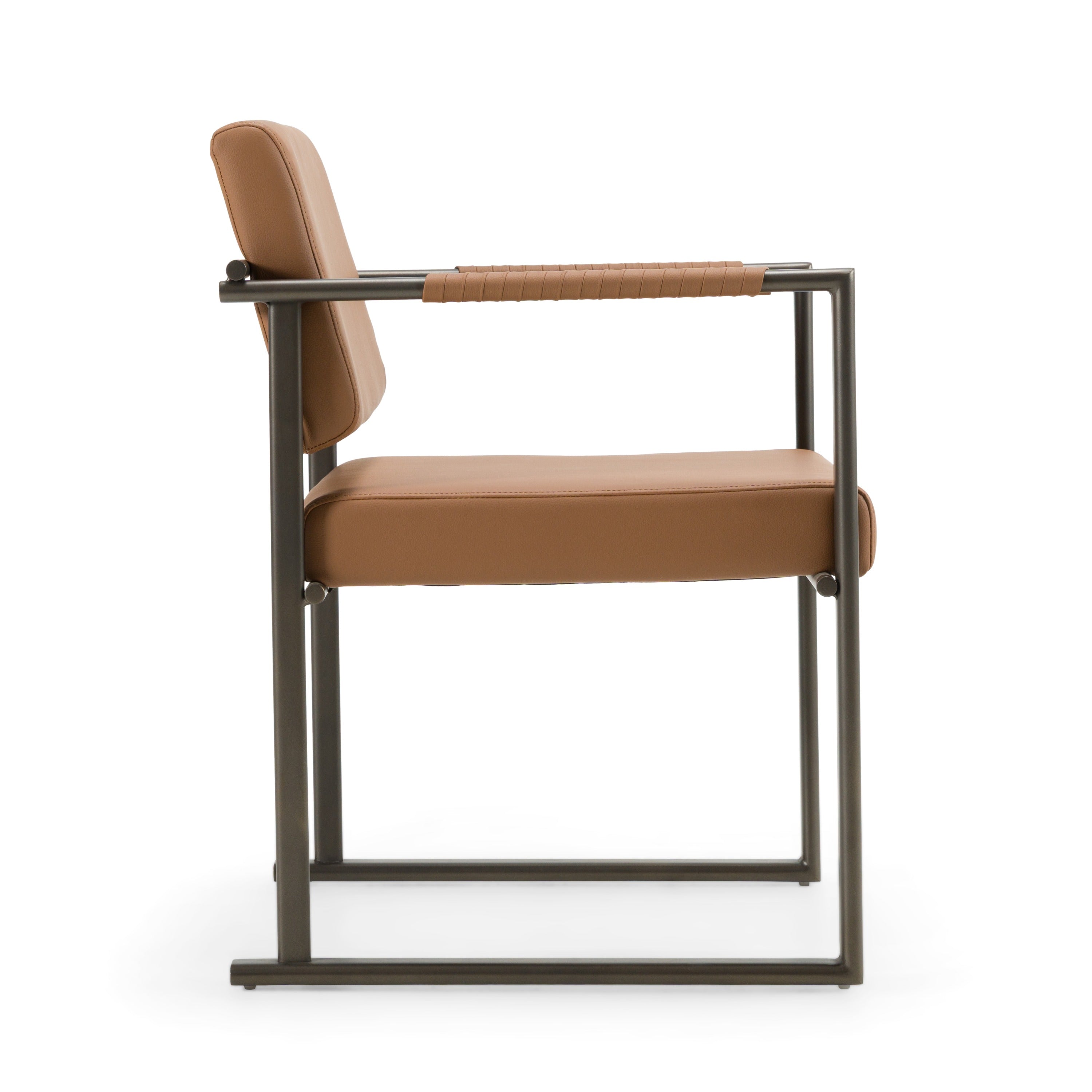 The Modrest Atlan Modern Camel Vegan Leather and Dark Gold Dining Chair is a masterclass in modern sophistication. Draped in sumptuous camel vegan leather, its sleek silhouette is elevated by a bold dark gold metal frame, exuding a sense of understated opulence. The armchair's clean lines and solid back offer both comfort and style, seamlessly merging form with function. Ideal for the discerning homeowner, this chair transforms any dining space into a refined retreat, where contemporary elegance meets timeless design.