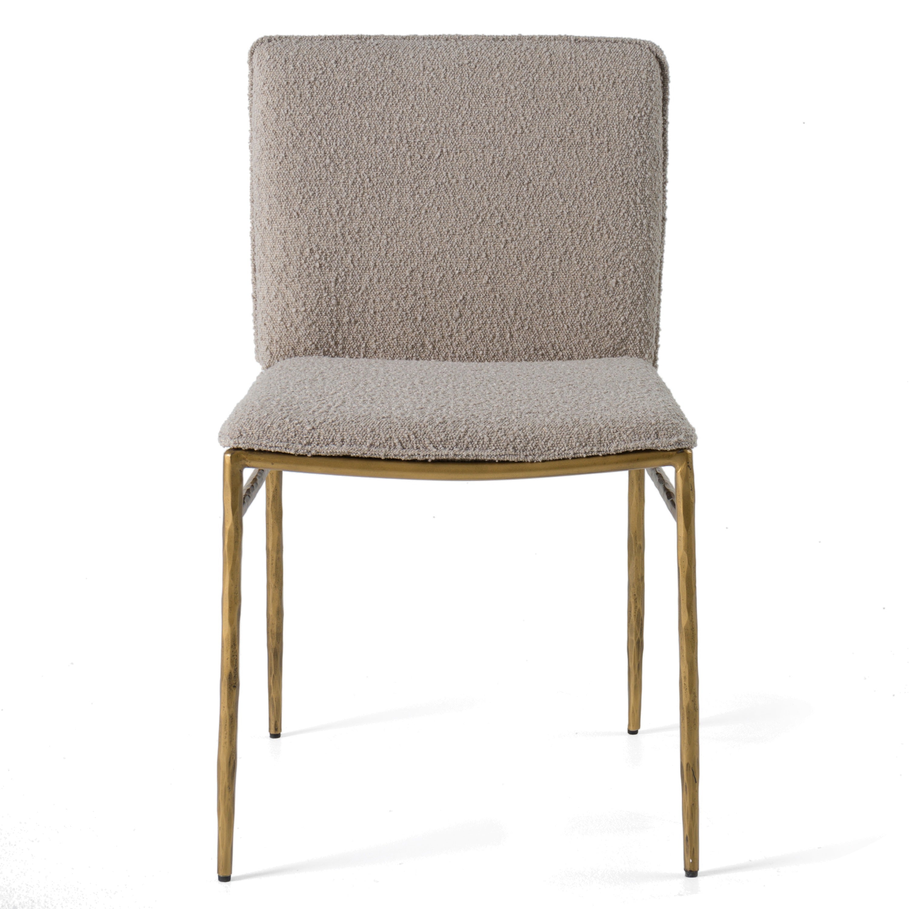 The Modrest Atlanta dining chair showcases a modern aesthetic with its sleek lines and elegant materials. Upholstered in a soft beige fabric, it offers a cozy yet sophisticated seating experience. The chair features a minimalist design with a sturdy brass frame that adds a touch of luxury, making it an ideal addition to contemporary dining spaces. Its understated charm complements various interior styles, ensuring it fits seamlessly into your decor. This chair combines comfort and style, perfect for both casual dinners and formal gatherings.