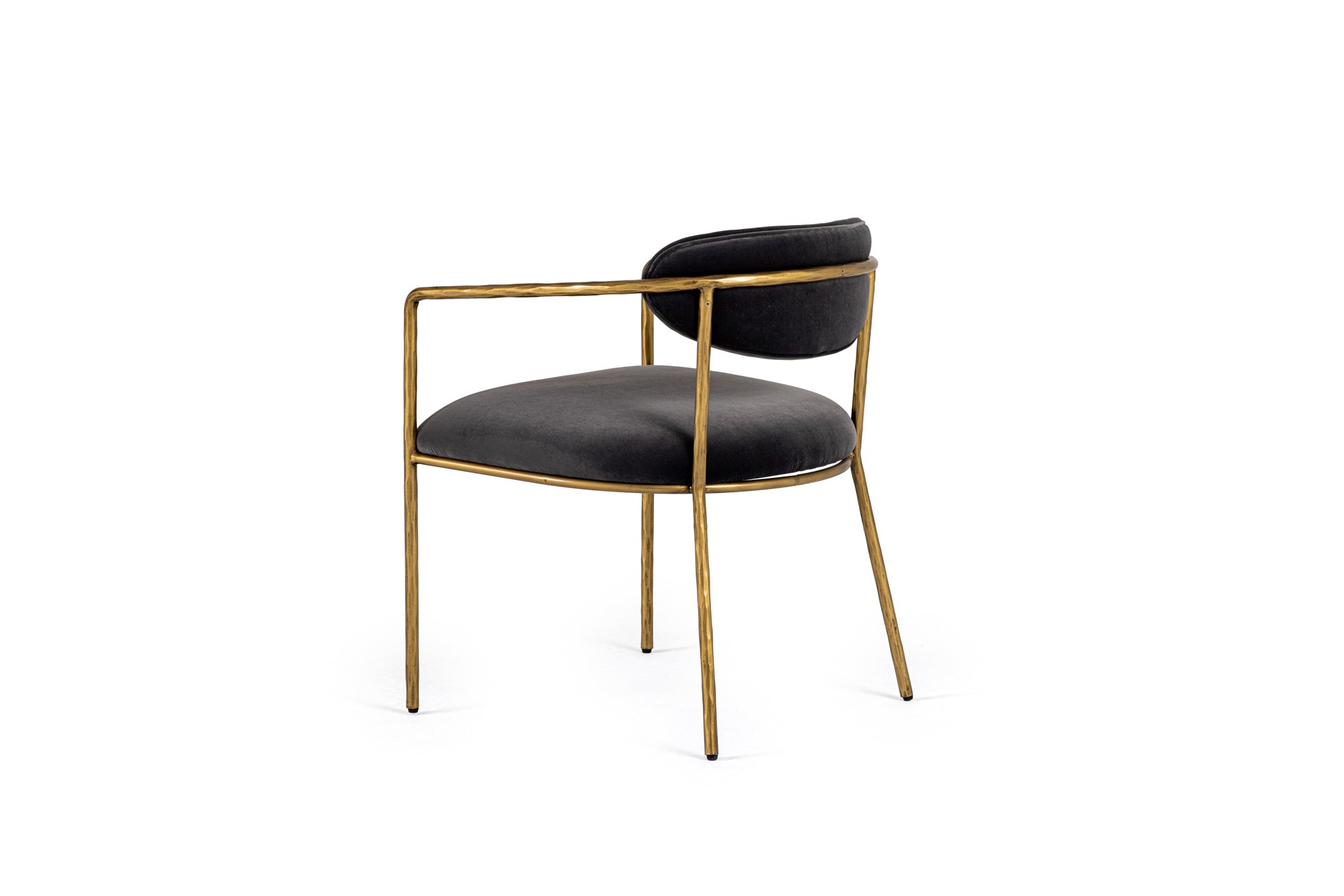 Introducing the Modrest Baird Dining Chair, a stunning blend of modern elegance and comfort. Upholstered in plush grey velvet, it features a gracefully contoured seat and backrest that invite relaxation. The distinctive brass frame adds a touch of sophistication, enhancing its contemporary aesthetic. With open armrests and slender legs, this chair offers a light, airy feel, making it perfect for both formal and casual dining settings. Elevate your dining experience with this stylish addition that seamlessly marries form and function.