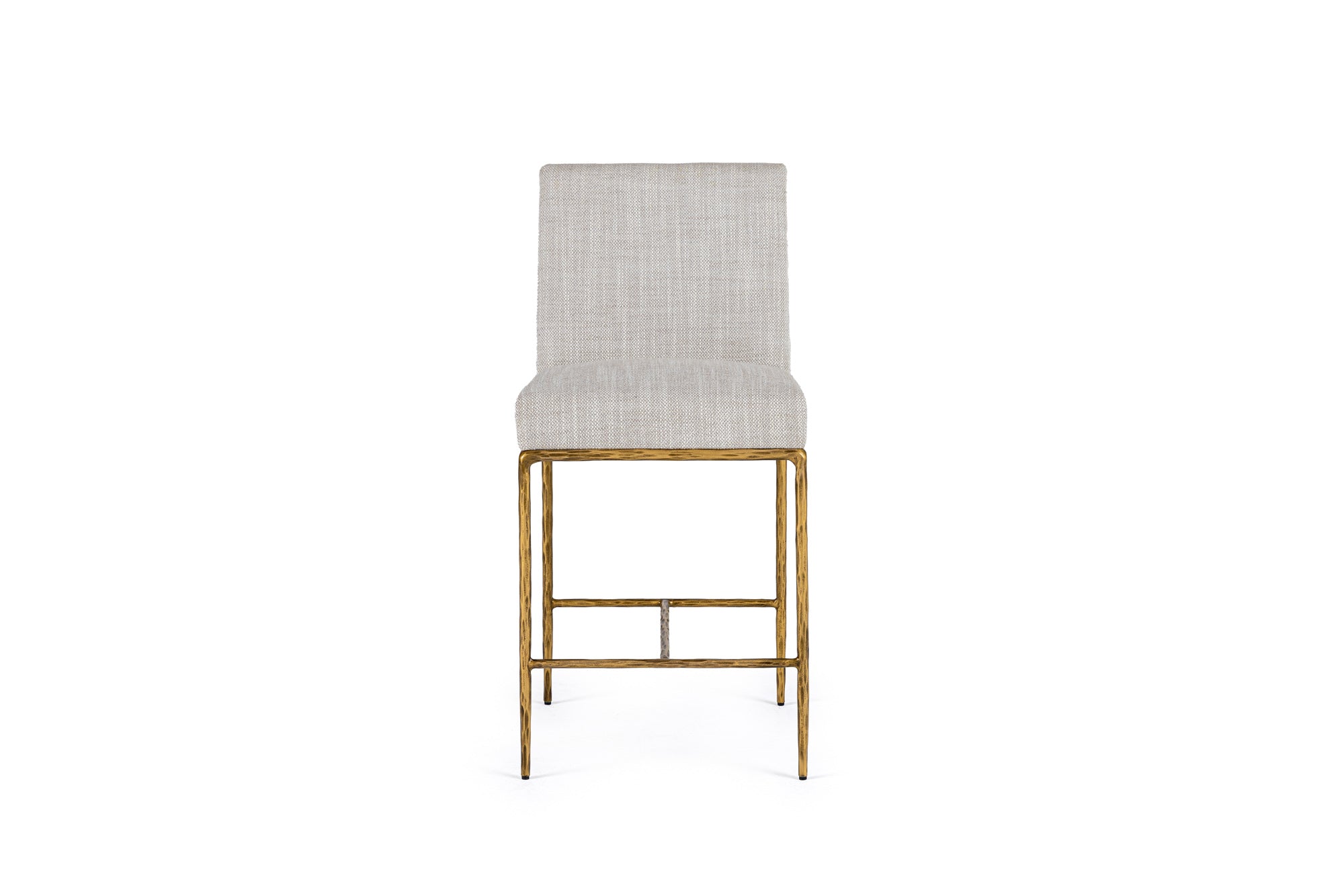 The Modrest Beasley Counter Chair showcases a sleek, modern design with its off-white linen upholstery and elegant brass base. The minimalist silhouette features clean lines and a comfortably contoured seat, making it a stylish addition to any bar or kitchen counter. Its neutral color palette allows it to seamlessly blend with various décor styles, while the metallic accents add a touch of sophistication. Perfect for contemporary spaces, this chair enhances both comfort and aesthetics.