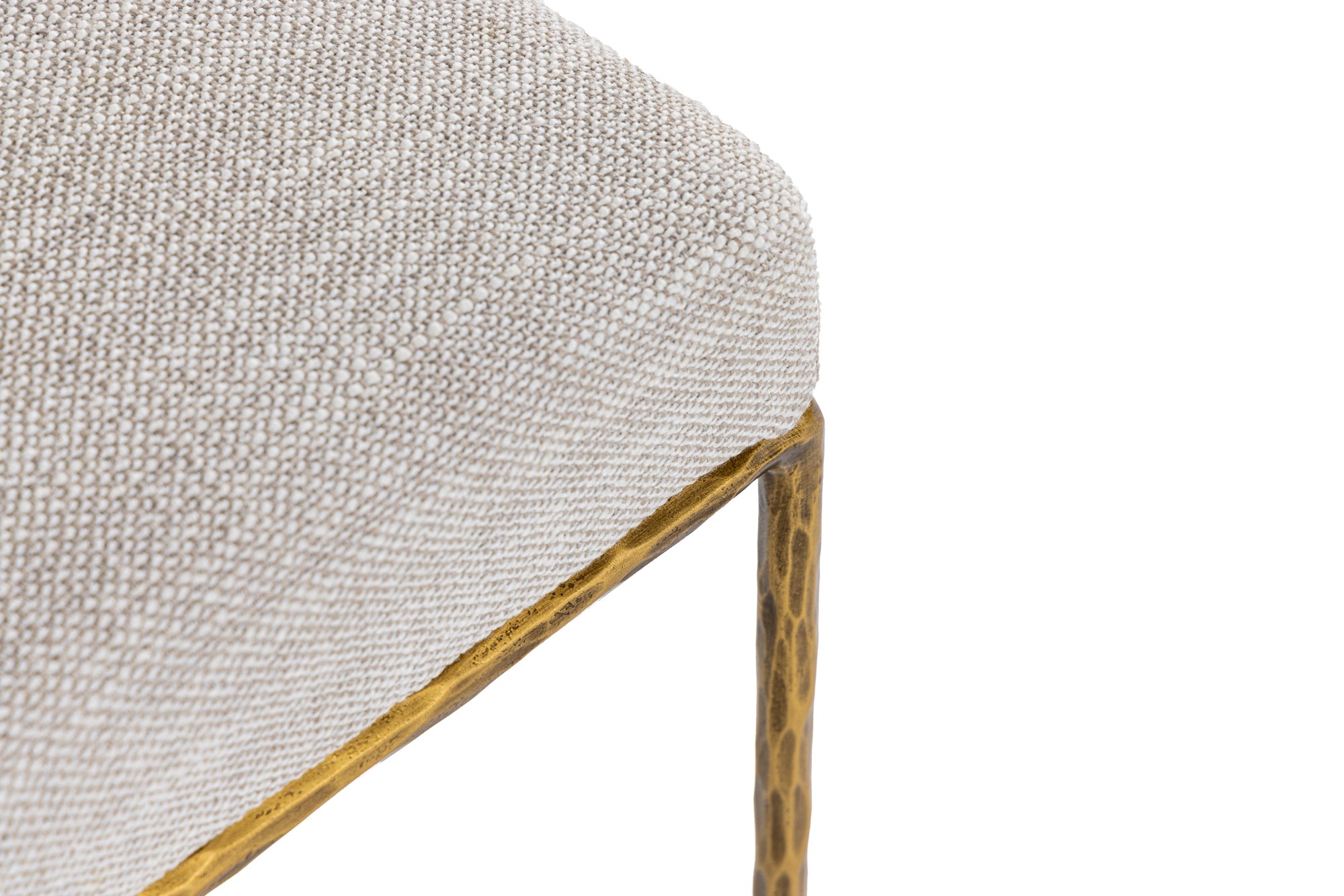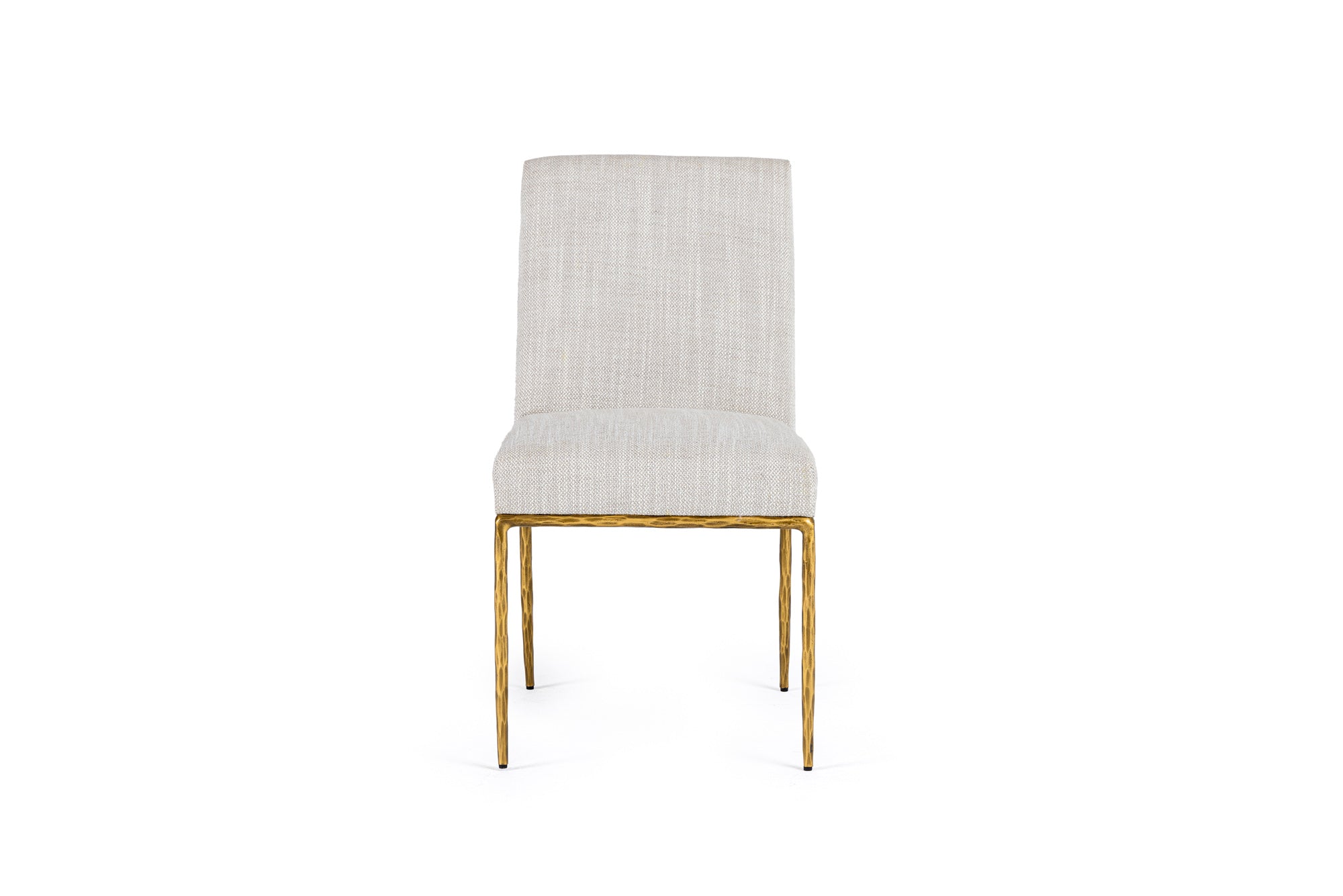 The Modrest Beasley dining chair showcases a sleek and modern design, featuring a sophisticated off-white linen upholstery that adds a touch of elegance to any dining space. Its clean lines and minimalist silhouette are complemented by a stylish brass frame, enhancing its contemporary appeal. This chair offers both comfort and style, making it a perfect addition to a chic dining room setting. The subtle texture of the fabric and the warm brass finish create a harmonious contrast, inviting guests to sit and enjoy meals in comfort.