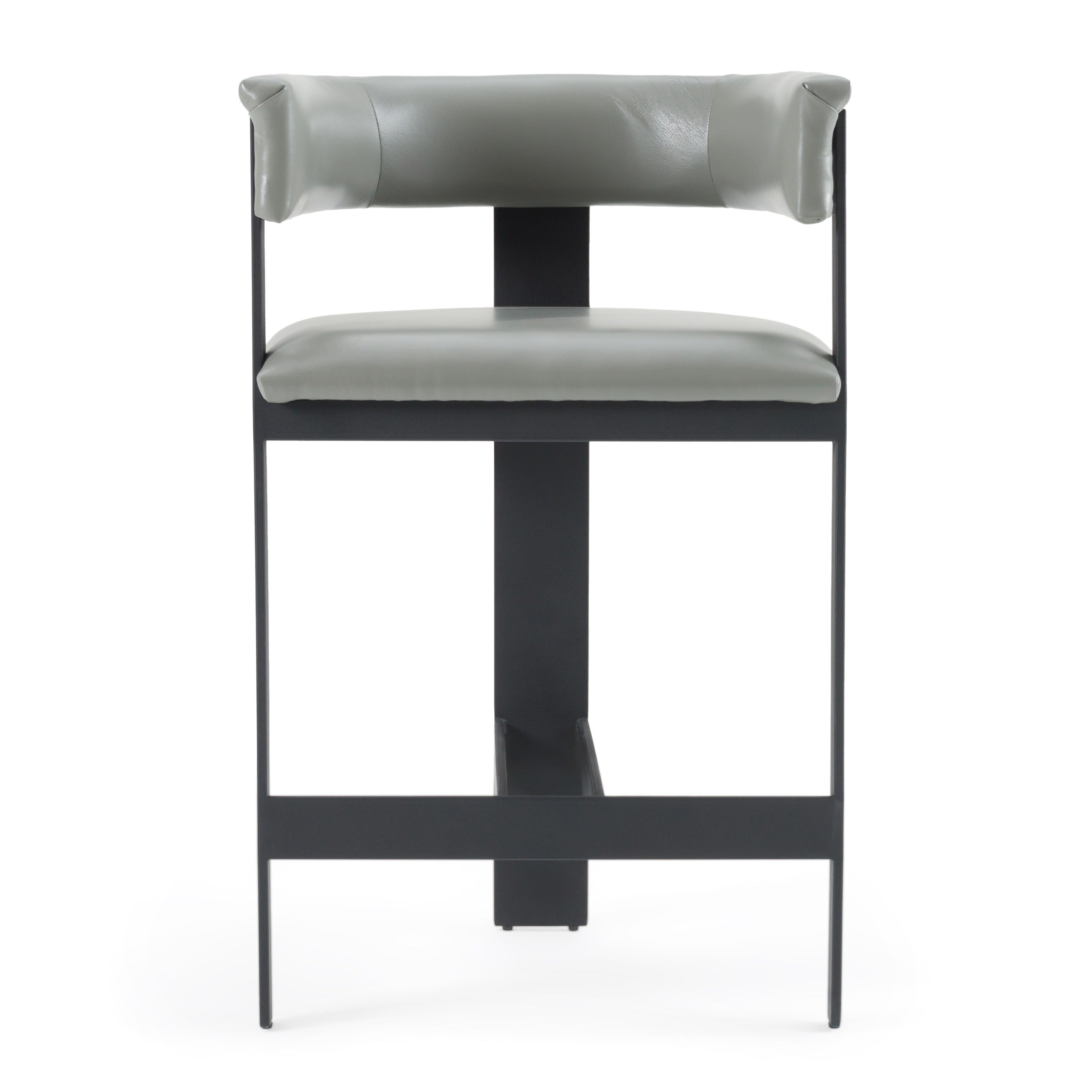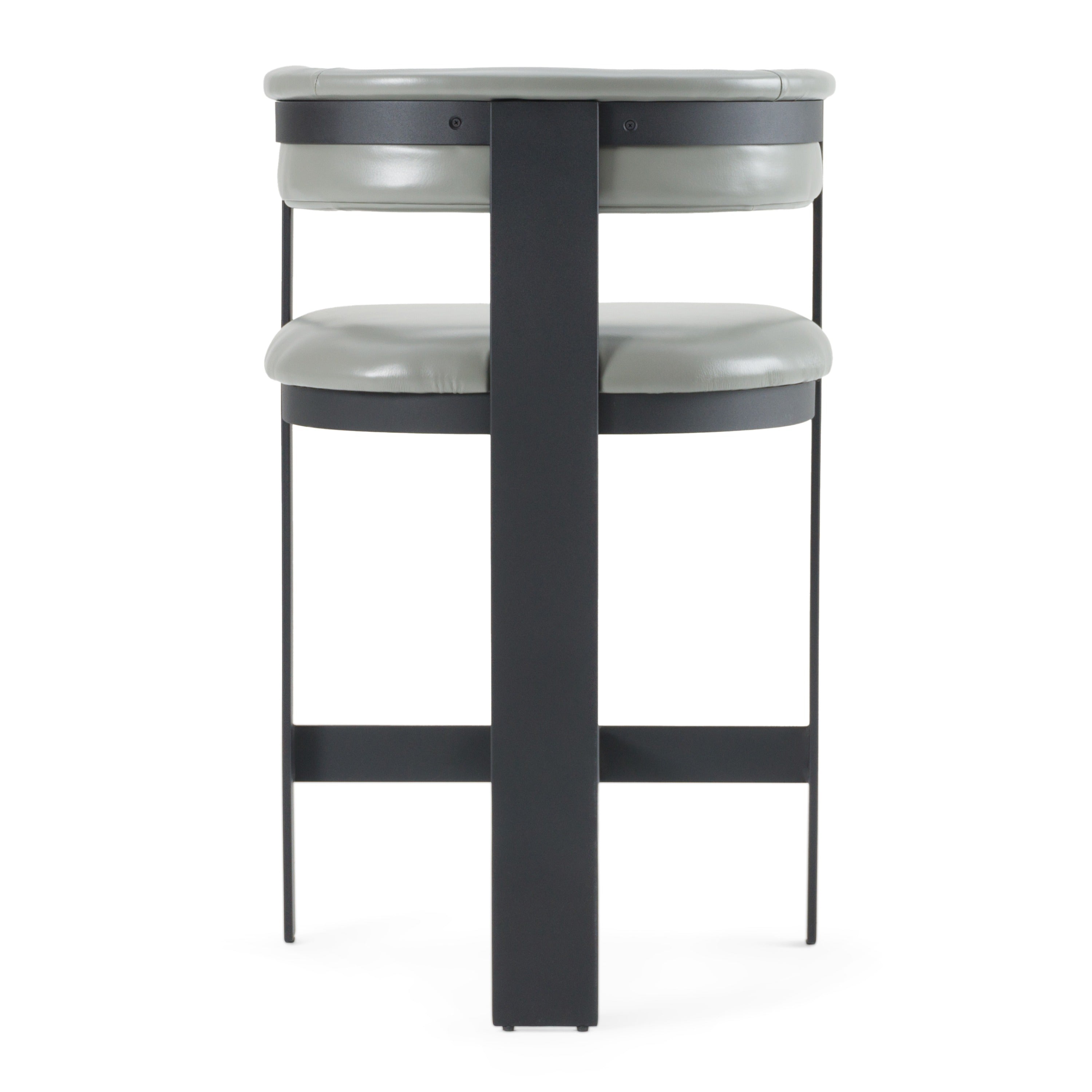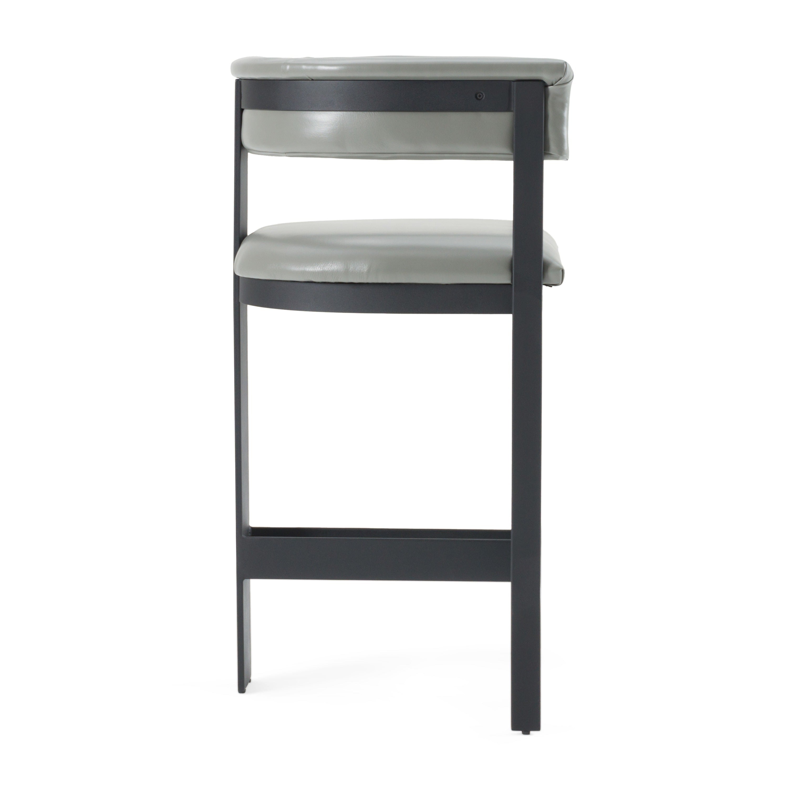 The Modrest Boswell Counter Chair marries sleek modernity with luxurious comfort, creating a captivating presence at any kitchen counter or bar. Its smooth grey faux leather upholstery contrasts beautifully with the bold, black metal frame, while the rounded back and armrests provide a chic, enveloping form. Crafted to be both a functional and aesthetic addition, this counter chair elevates any space, lending it a sophisticated, contemporary ambiance that is both welcoming and refined.