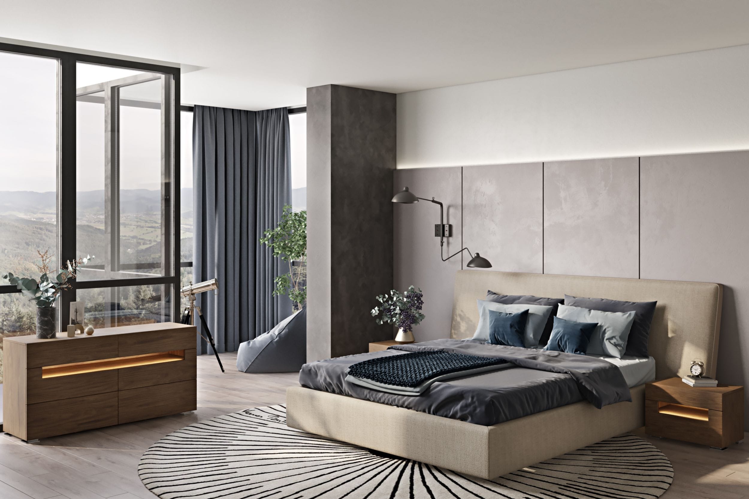 The Brittany Beige Fabric Bed is a traditional-style platform bed upholstered in a beige fabric. It can be styled in a variety of ways. Pair it with a faux fur throw for an industrial style, with a velvet accent chair for a glam look, or with a navy rug and plush pillows for more traditional styling.