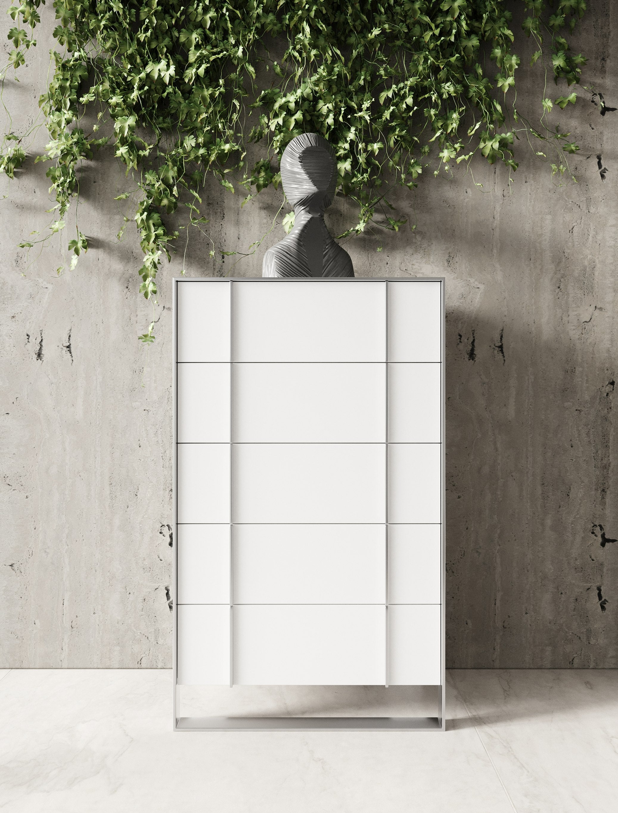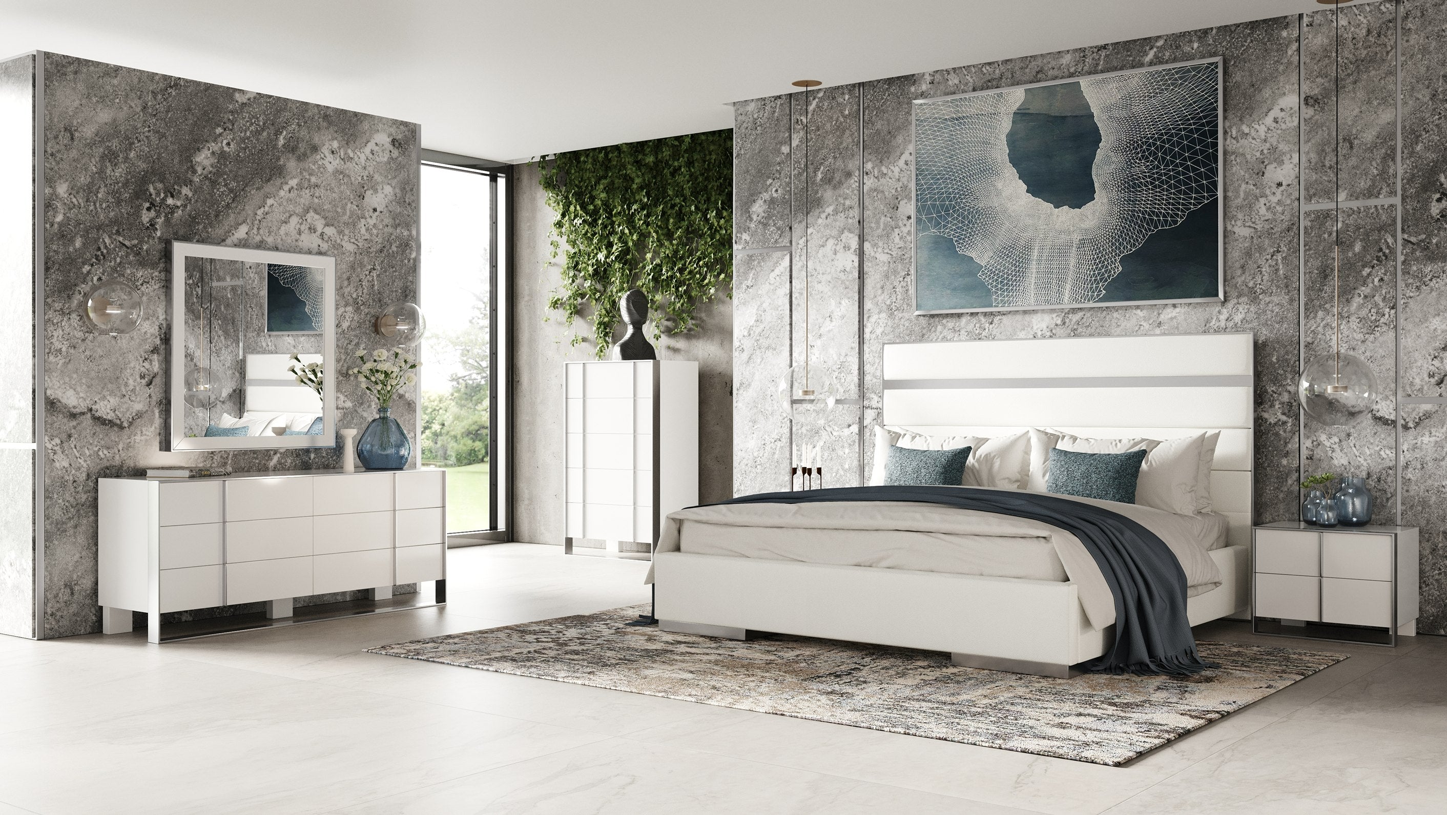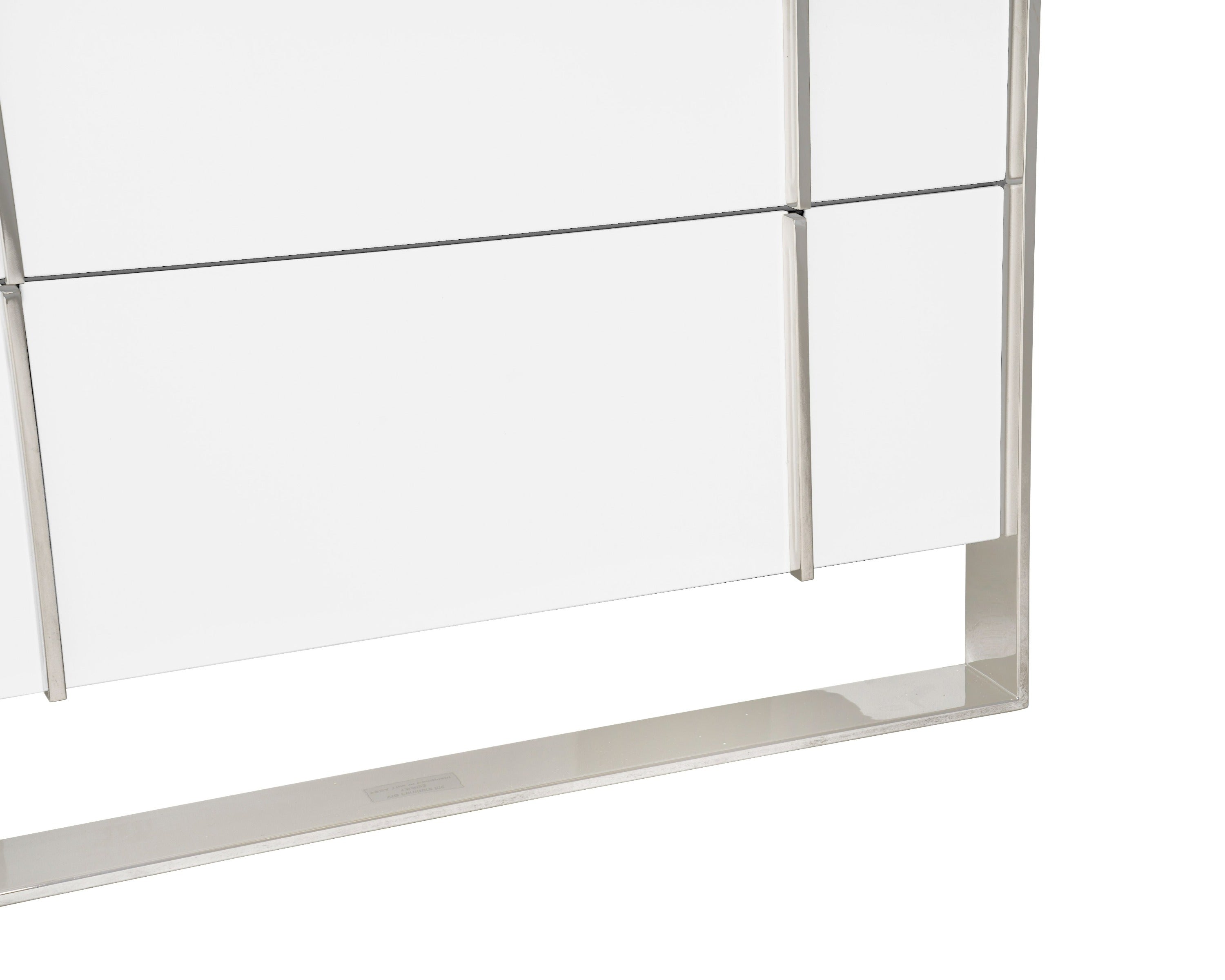 The Nova Domus Cartier Chest Is a credit to its brilliant designer. The stainless steel metal framing masterfully surrounds the bold white high gloss of the chest. Five soft closing drawers create ultimate functionality. Perfect for a glamourous modern home, this Chest will pair perfectly with the Cartier Nightstand, Bed, and Dresser for a full set.