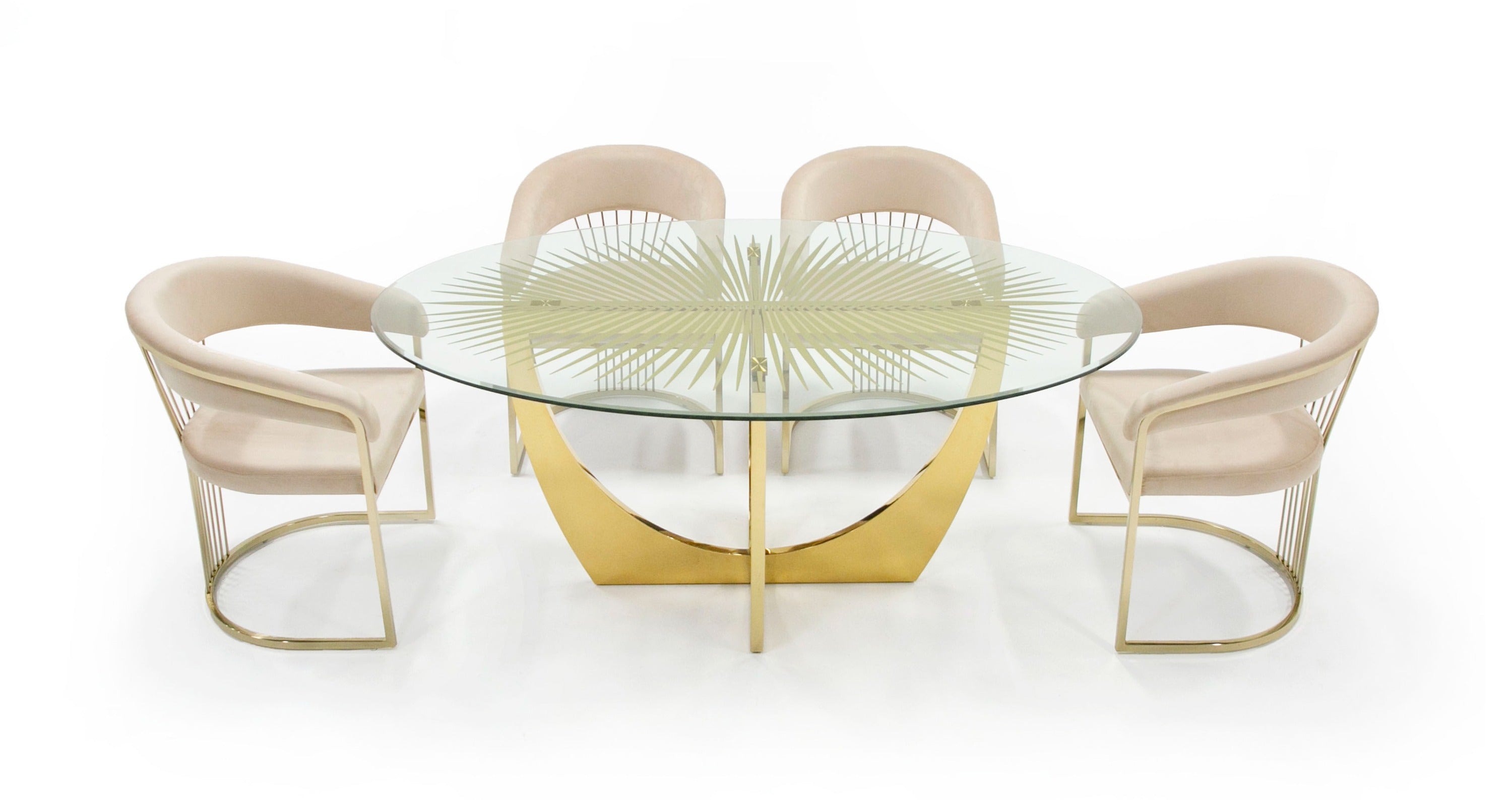 The Chambers Luxury Table is truly a Masterpiece! Gold Leaf inlay and Gold Finish Base make it very attractive and special.