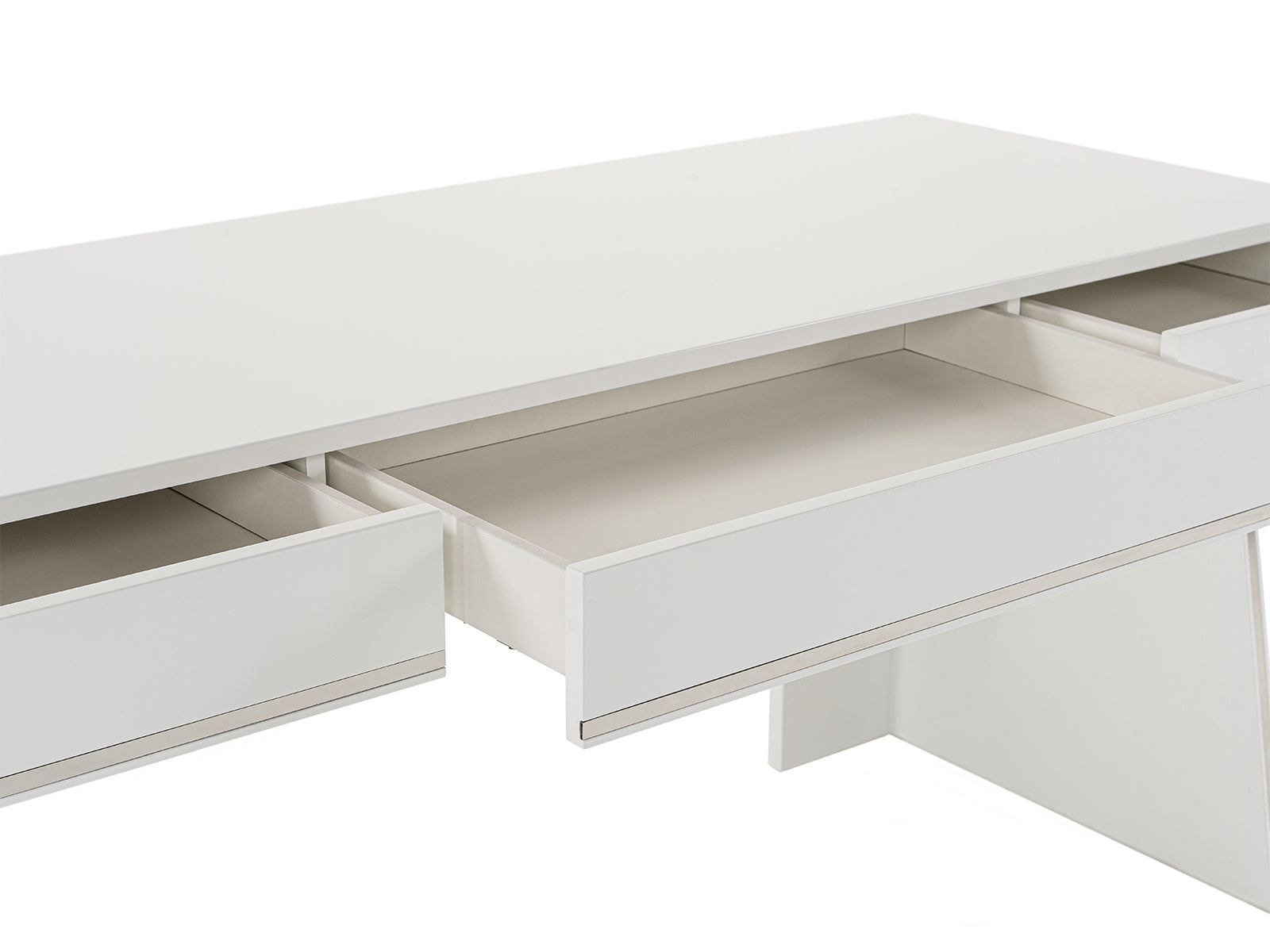 With its design and functionality, this Modrest desk makes for a distinctive officespace. Its sleek lines and minimalist design complement any modern workplace, while its striking appearance and substantial storage capacity make it the ideal combination.