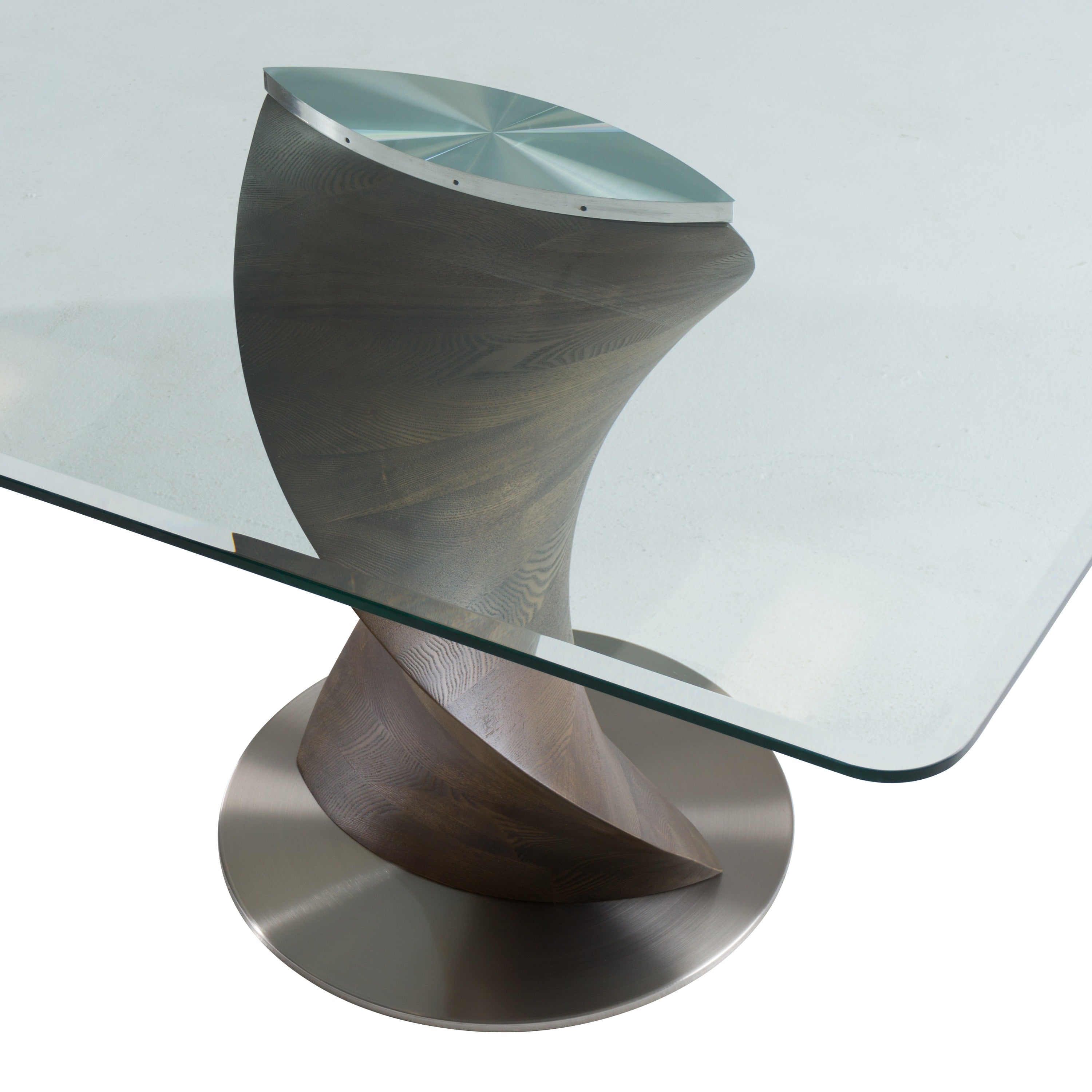 The Modrest Cleveland dining table is an architectural masterpiece, effortlessly blending form and function. Its striking double pedestal base in grey ash wood echoes natural beauty while exuding a contemporary edge, creating a captivating foundation for the tempered glass top. Perfectly balancing elegance and durability, this table becomes an anchor of sophistication in any dining space, inviting conversations and elevating the ambiance. This statement piece not only enhances your home s aesthetic but also embodies refined craftsmanship, bringing a touch of modern luxury to every meal shared around it.