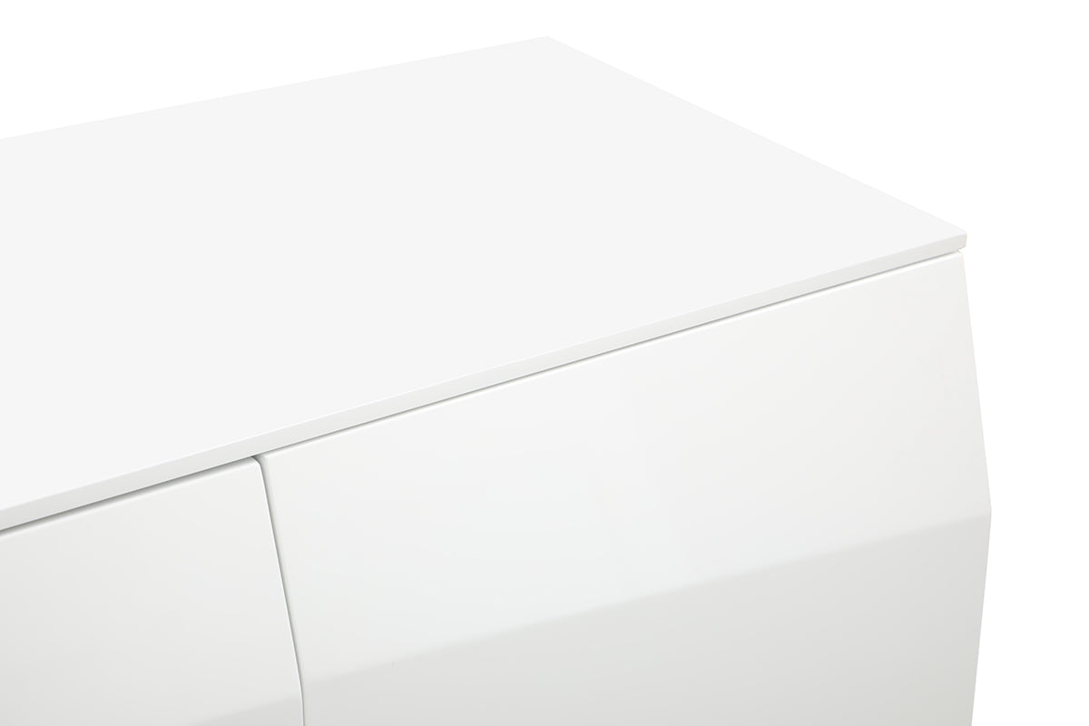 Illustrating fines lines in a sleek high-gloss white finish, the Modrest Columbia Modern White Buffet is your ultimate answer to having order for your party dining wares. Sporting an angular wedge cut architecture, this rectangular buffet features three cabinets with two inside shelves. One cabinet is longer in diameter and has two doors, while the other two have a single door. This design style allows you to store your dining items accordingly. Ingeniously styled are the angled stainless steel legs that provide robust support. Store and find your party dining items easily with the efficient design of the Columbia modern white buffet.