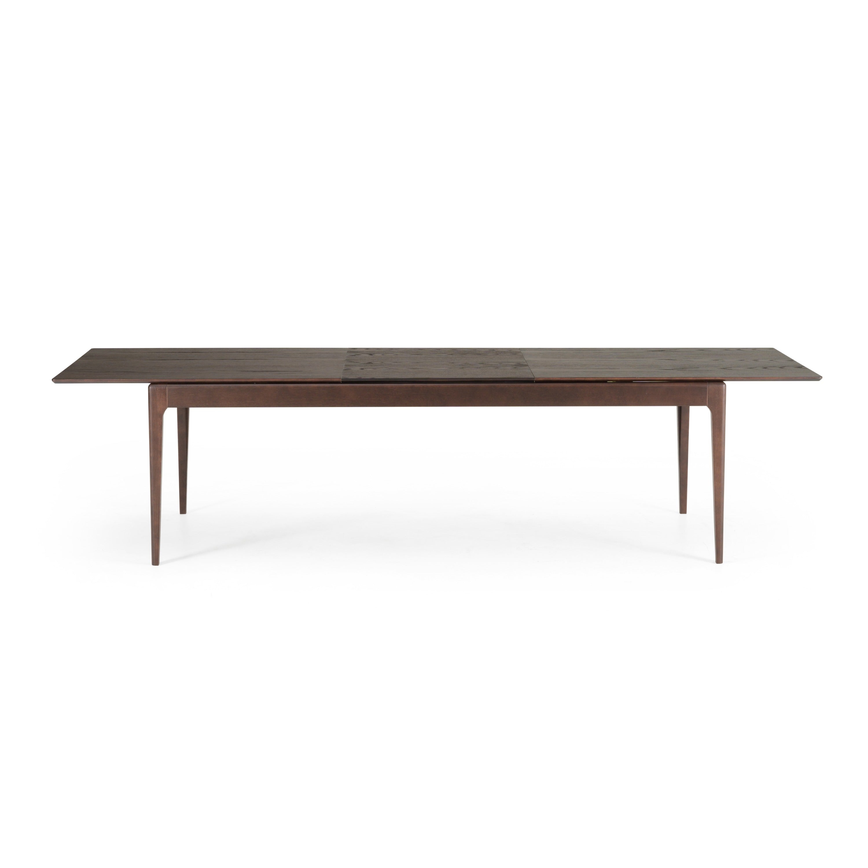 Looking for a dining table with a simple yet elegant aesthetic? The Dallas Dining Table sports a brown oak veneer top and a middle collapsible extension to add additional seating for parties and holidays! With solid oak legs and a brown stain finish, this table brings mid-century simplicity back to the 21st century dining space.