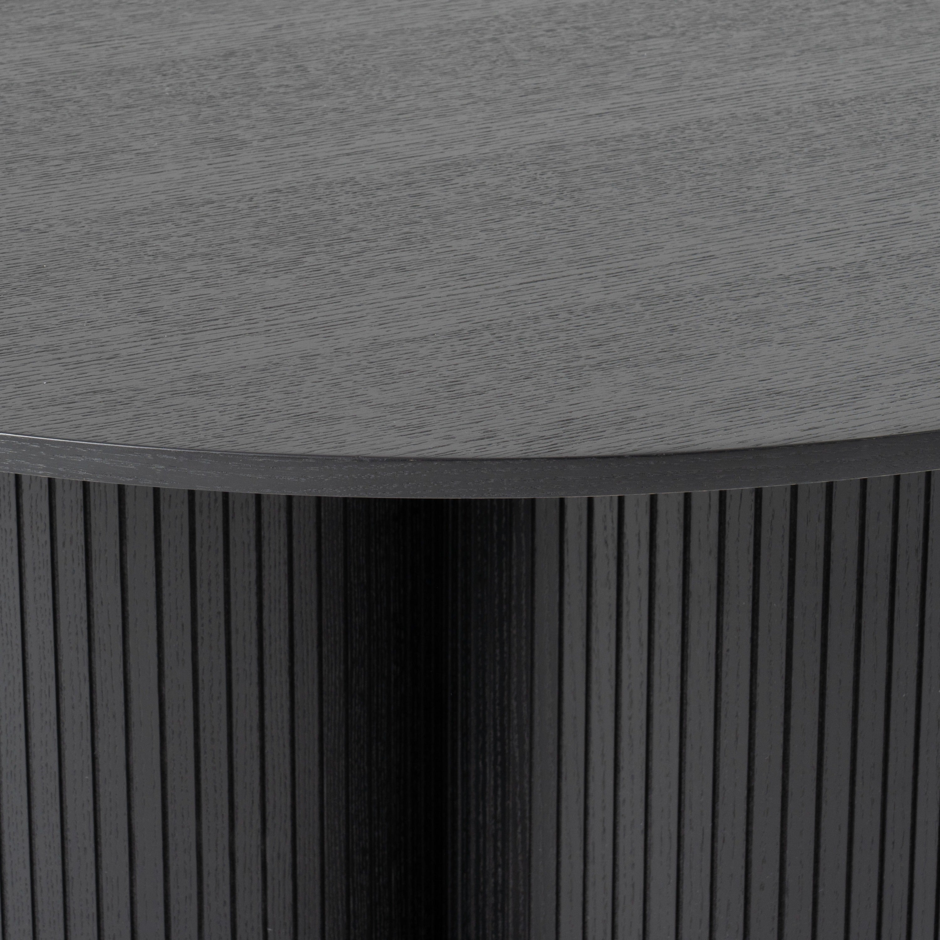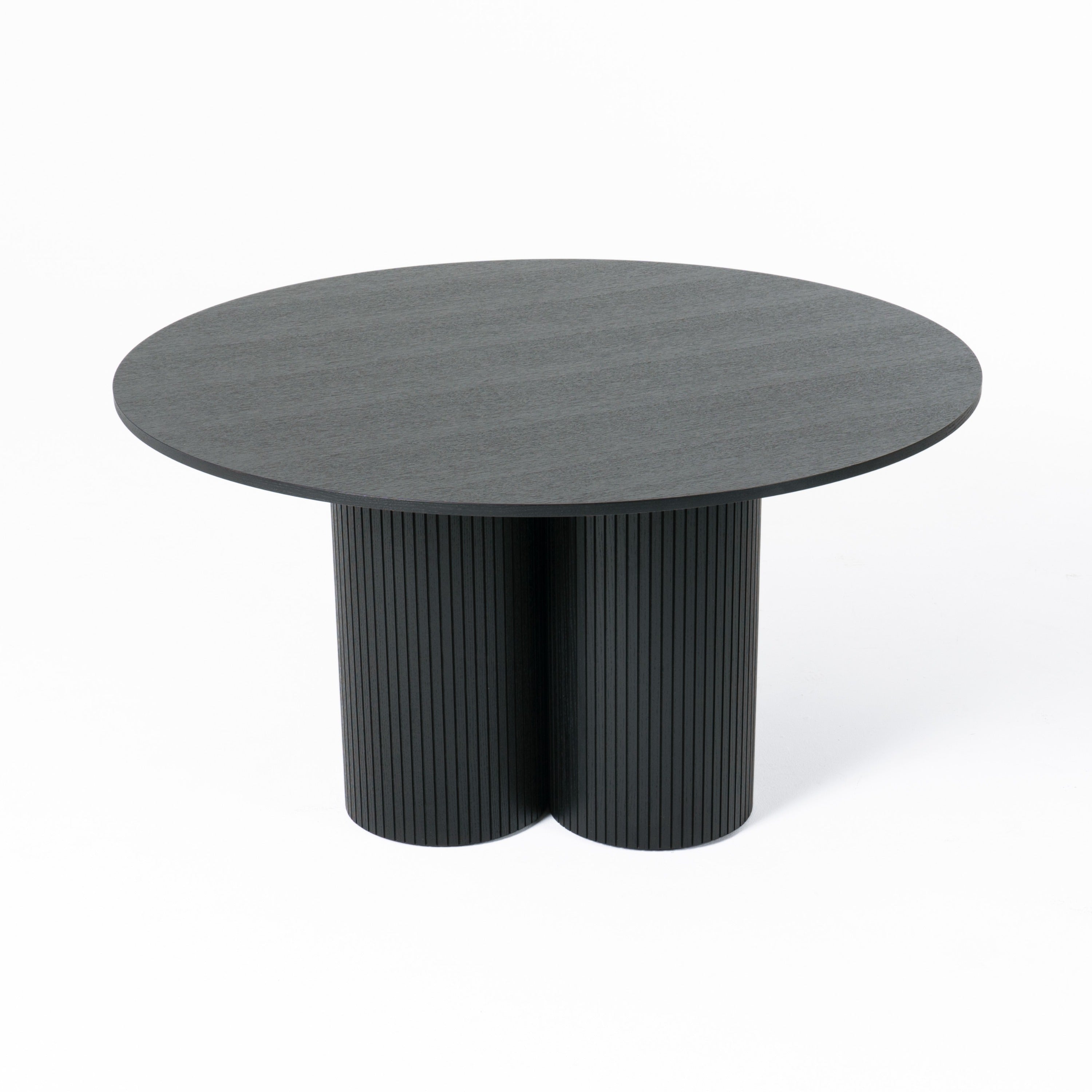 The Depew Round Black Oak Dining Table is a beautiful addition to any dining room. The black oak veneer wood top and panel pedestal base provide a simple yet stylish look that creates an elegant atmosphere. The Depew also is available in a walnut veneer finish.