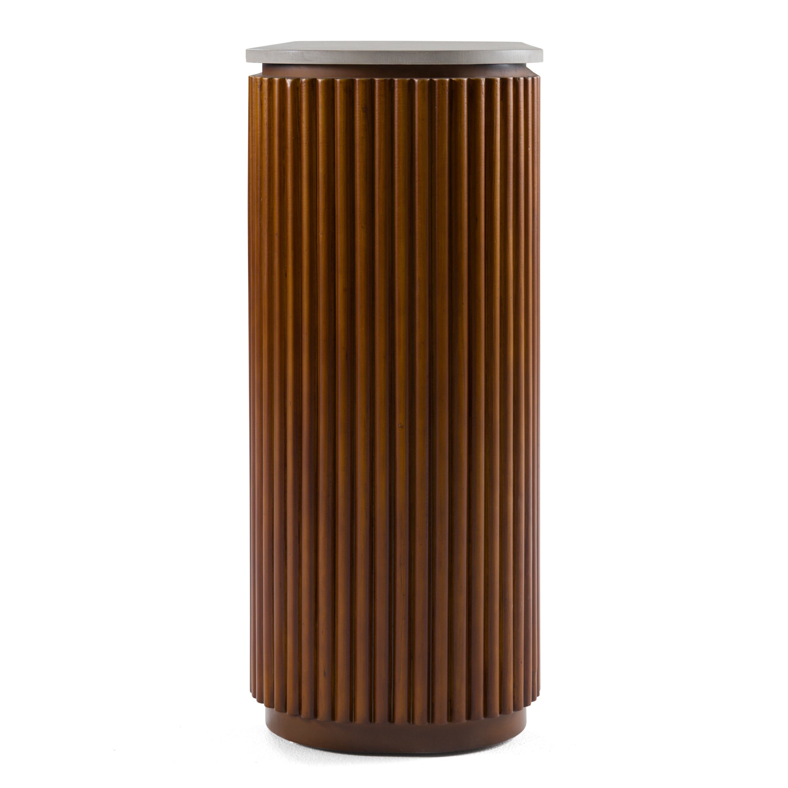 Bring style and glamor into your living room or dining room with the Duncan Console Table! This piece is the perfect, unique addition to your home you have been looking for. The Duncan sports a grey faux concrete top and a light walnut veneer base. The Duncan collection also includes a matching round dining table.