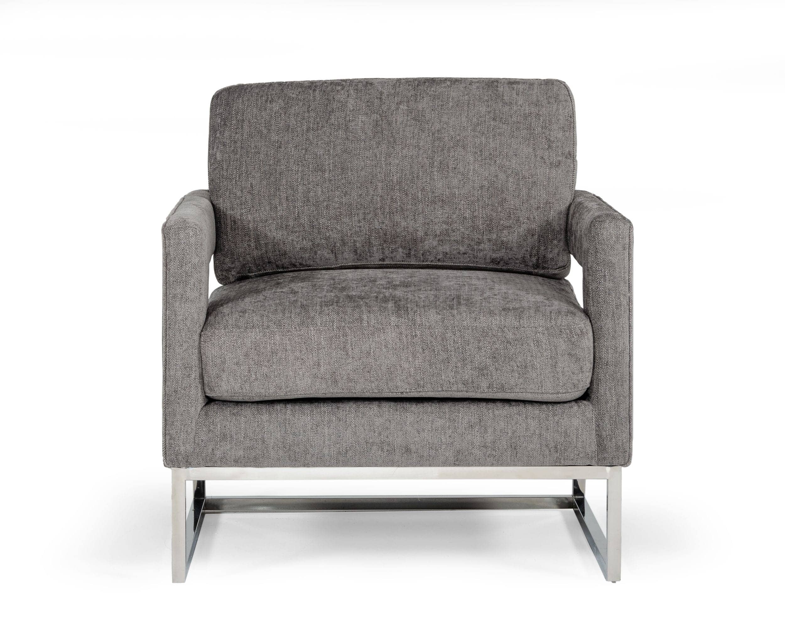 The Enda Accent Chair is a perfect accent for your glam living room. The grey velvet and pillow back create a plush experience that envelops you. The Stainless steel legs make the item infinitely versatile.