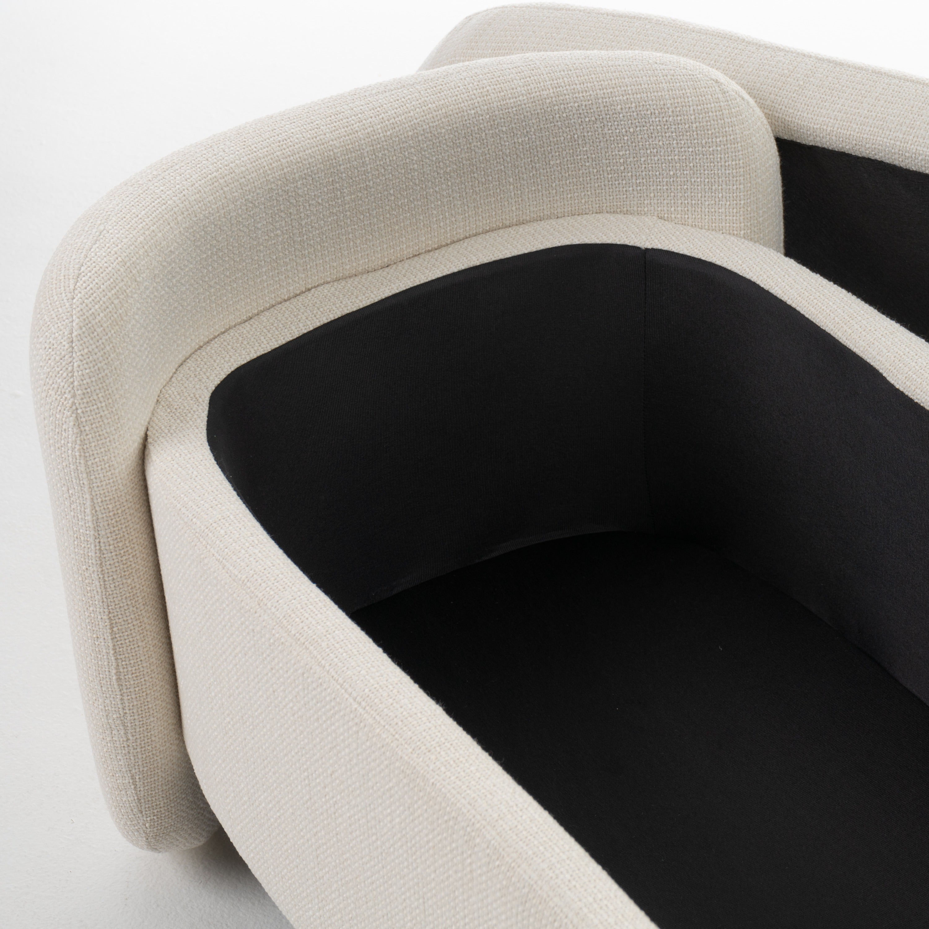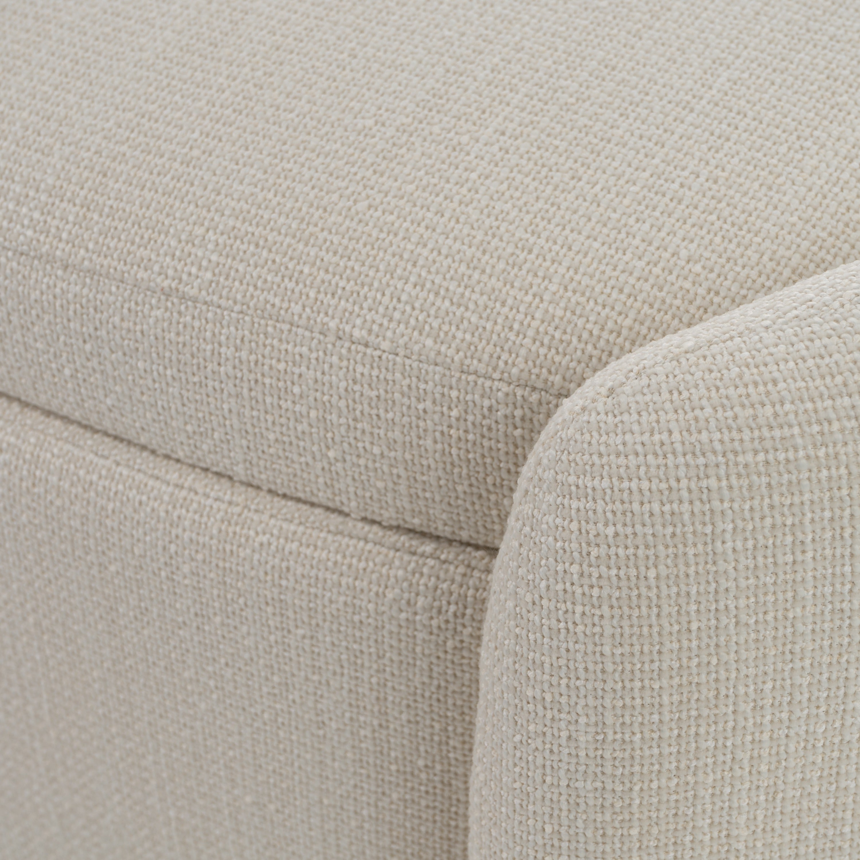 Modrest Erin - Modern Cream Fabric Storage Ottoman Bench is an elegant and functional addition to any living space, designed in an oval shape and upholstered in 100% polyester fabric in a soft cream color. This versatile piece serves as both a bench and storage solution, featuring a lid-off storage compartment to keep your items organized. The frame is constructed from sturdy manufactured wood, while the foam-filled upholstery ensures comfort. With a weight capacity of 200 lbs, this fully assembled ottoman bench requires minimal care, needing just a wipe with a dry cloth to maintain its pristine look.
