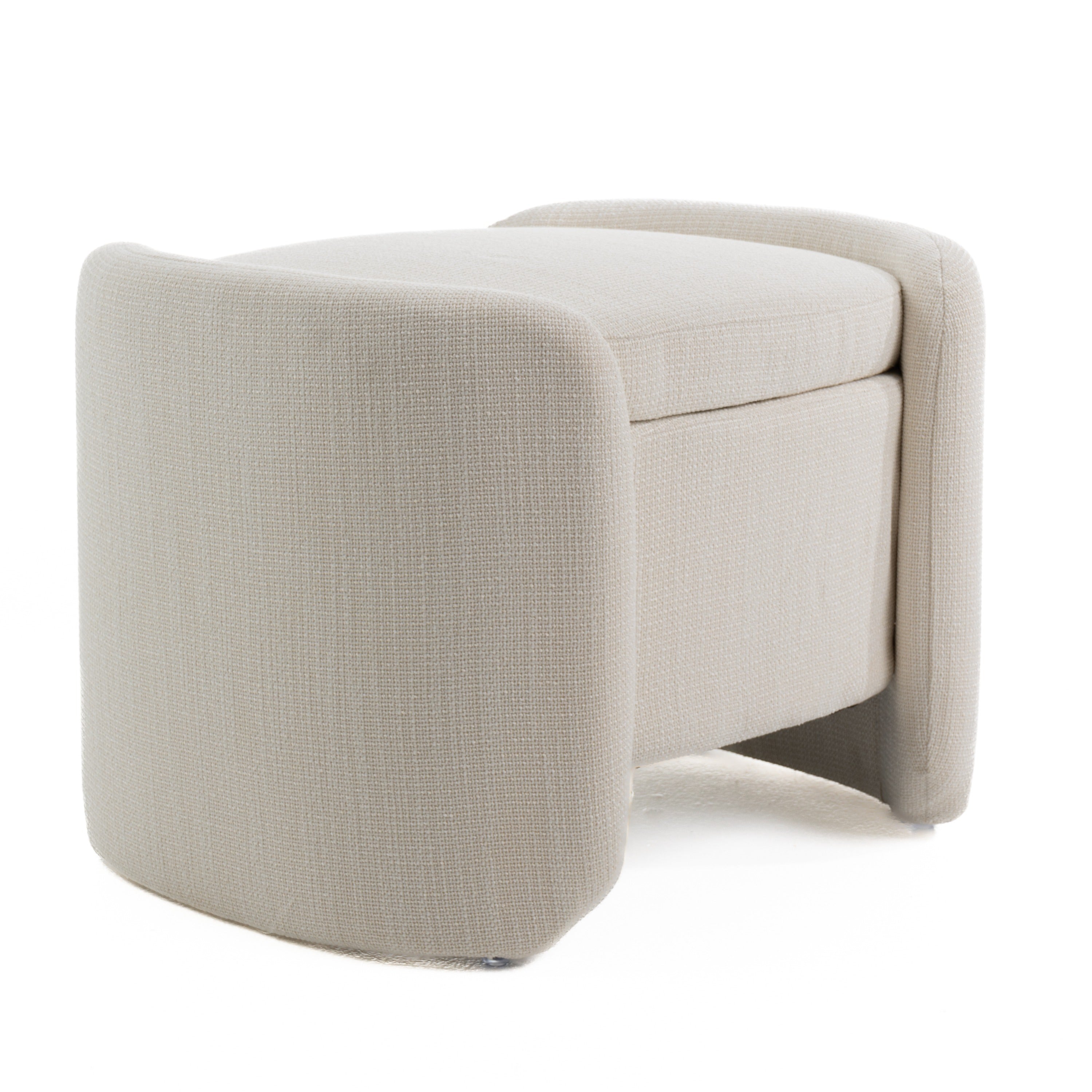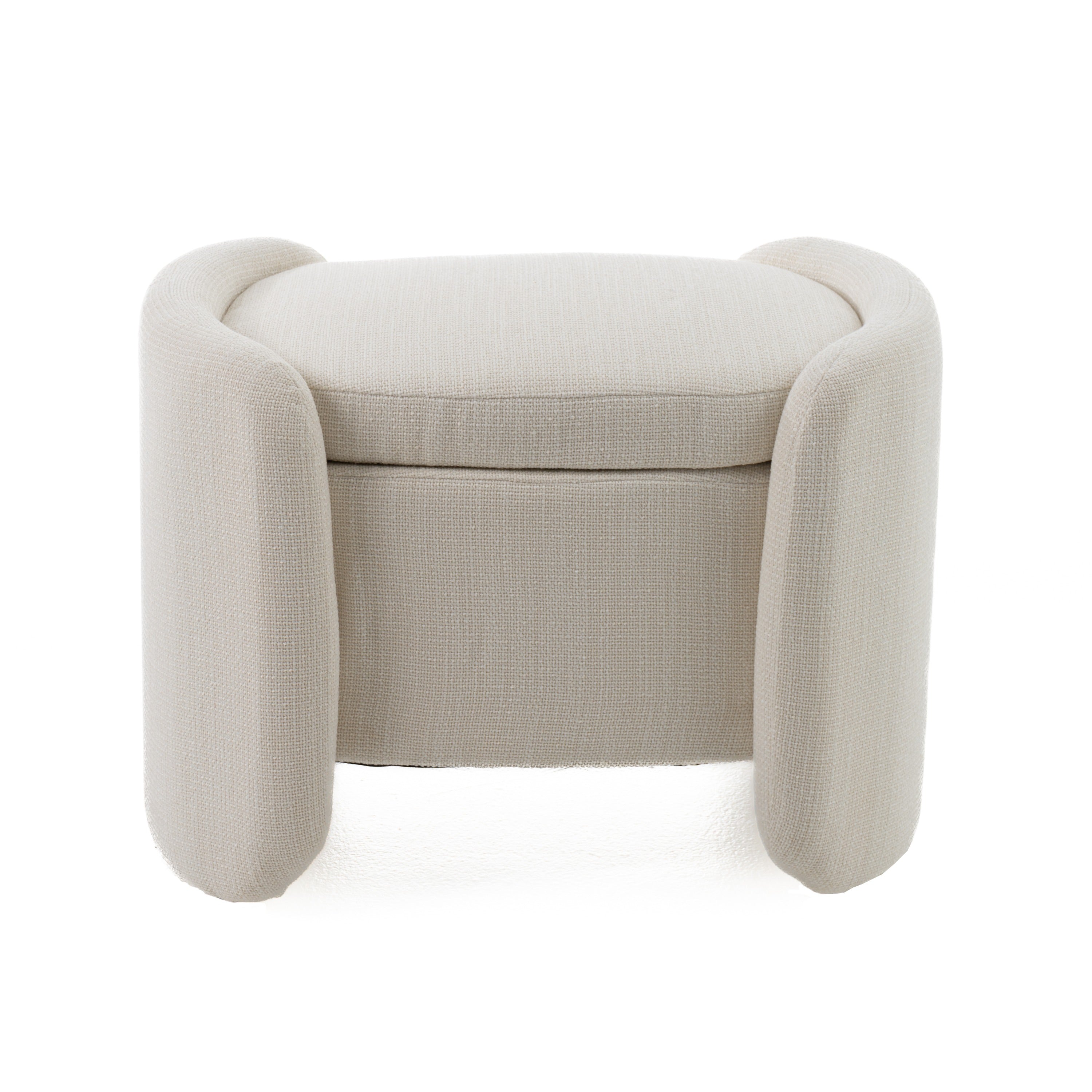 Modrest Erin - Modern Cream Fabric Storage Ottoman is a versatile and stylish piece, perfect for both seating and storage needs. Upholstered in 100% polyester fabric in a creamy color, this oval-shaped ottoman features a lid-off storage design, allowing you to neatly tuck away items. The frame is made from durable manufactured wood, and the foam-filled upholstery provides comfortable seating. With a weight capacity of 200 lbs, this fully assembled ottoman is easy to care for, requiring just a simple wipe with a dry cloth to keep it looking its best.