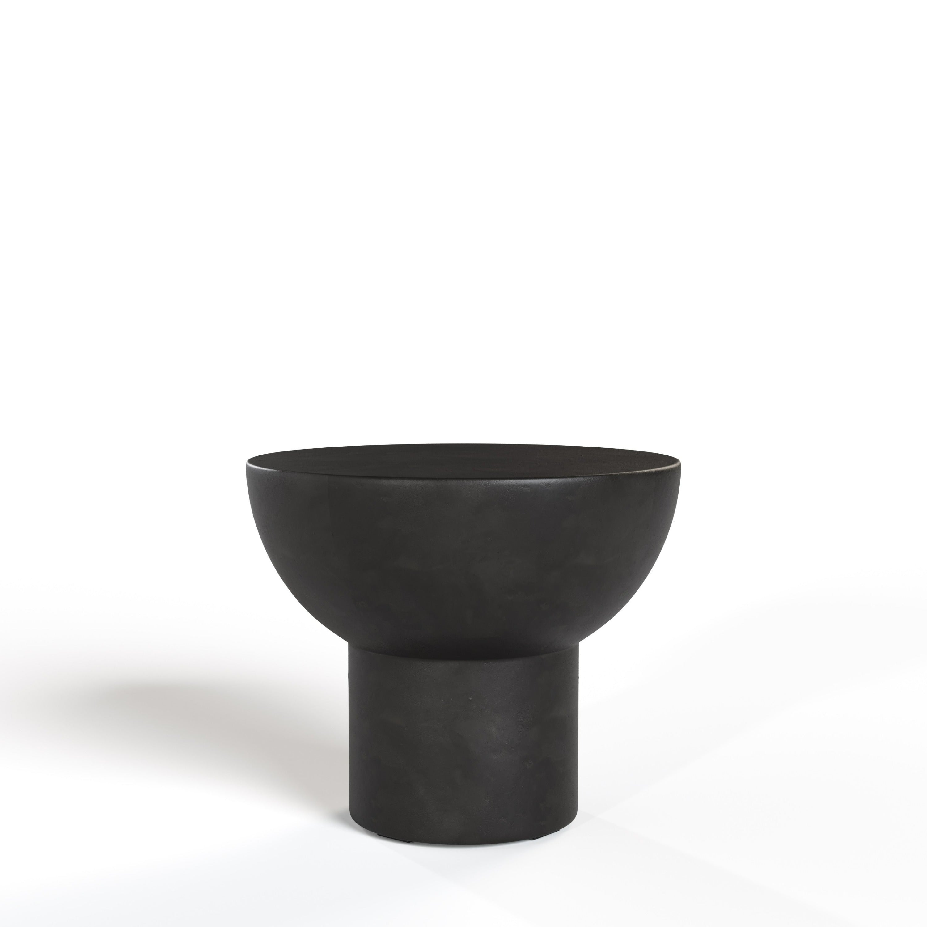 The Modrest Fate Modern Black Concrete End Table features a striking, sculptural form with a rounded top and a sturdy cylindrical base. Crafted from sleek black concrete, its minimalist design exudes contemporary elegance, making it a versatile accent for various interiors. The smooth, matte finish adds to its sophisticated aesthetic, seamlessly integrating into modern living spaces. This table is perfect for showcasing decorative items or serving as a chic surface for drinks. Its unique shape and bold color make it a standout piece in any room.