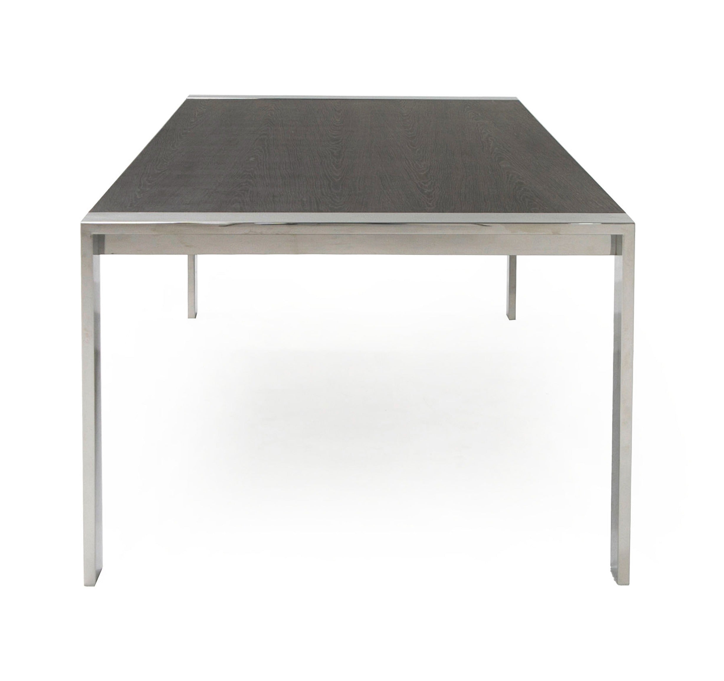 The Fauna Dining Table is the perfect simple style for a modern home. The elm grey veneer top juxtaposes the clean chrome lines of the legs and frame. Pair it with some colorful dining chairs to ensure that this set is highlighted and beautifully styled.