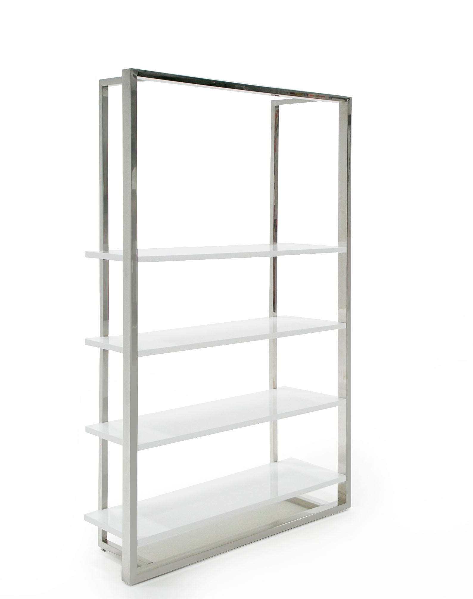 The Fauna Bookshelf is the perfect storage solution for your modern home. A white high gloss finished shelf is contrasted by the stainless-steel finish of the frame. Perfect for a contemporary office in your home.
