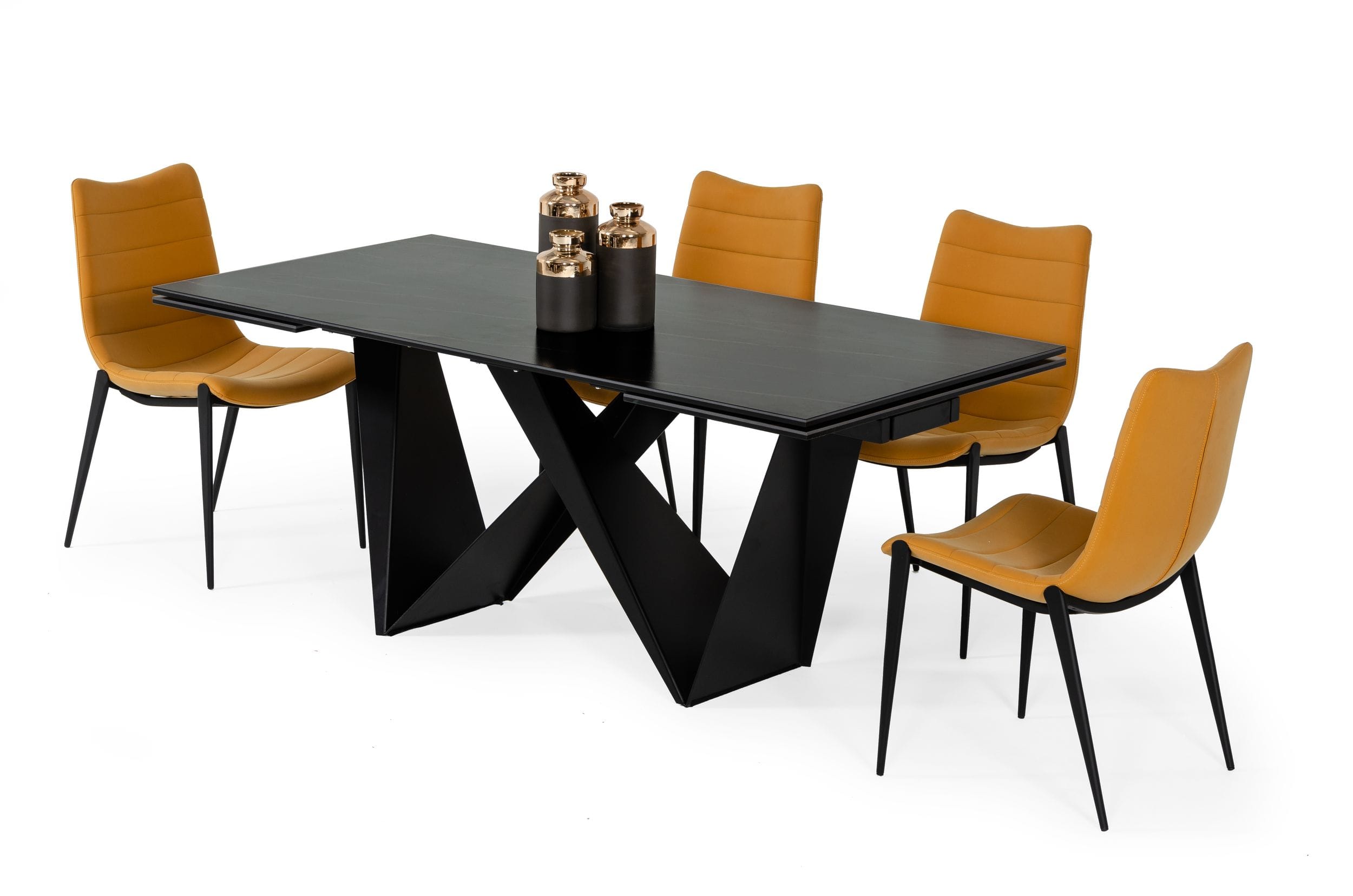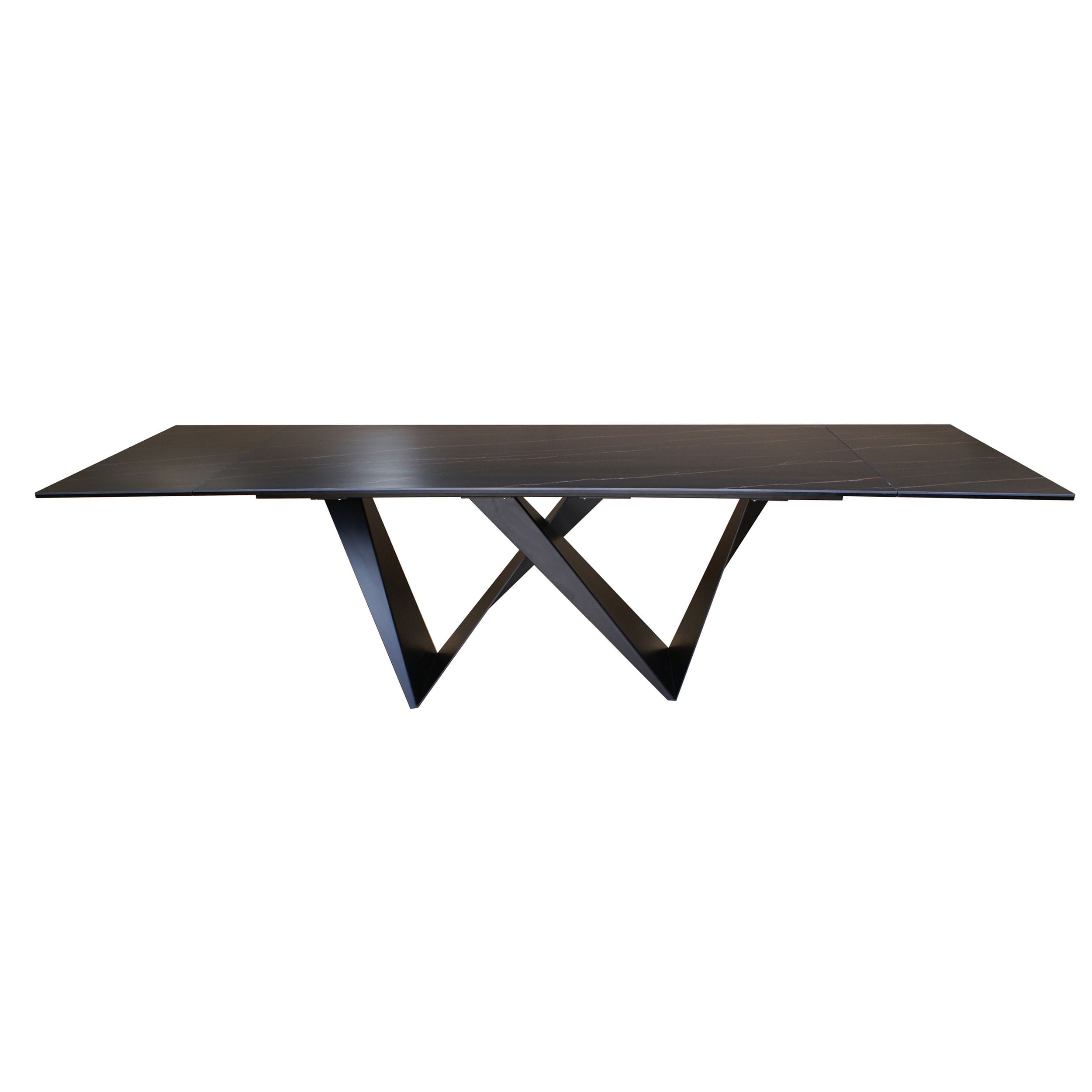 The Fritz Dining Table is the perfect extendable dining table for your contemporary home. The black powder coated metal base is formed into an asymmetrical shape while the black ceramic top continues the minimalist style of the piece. Seating between six and ten people to create a truly engaging eating space.
