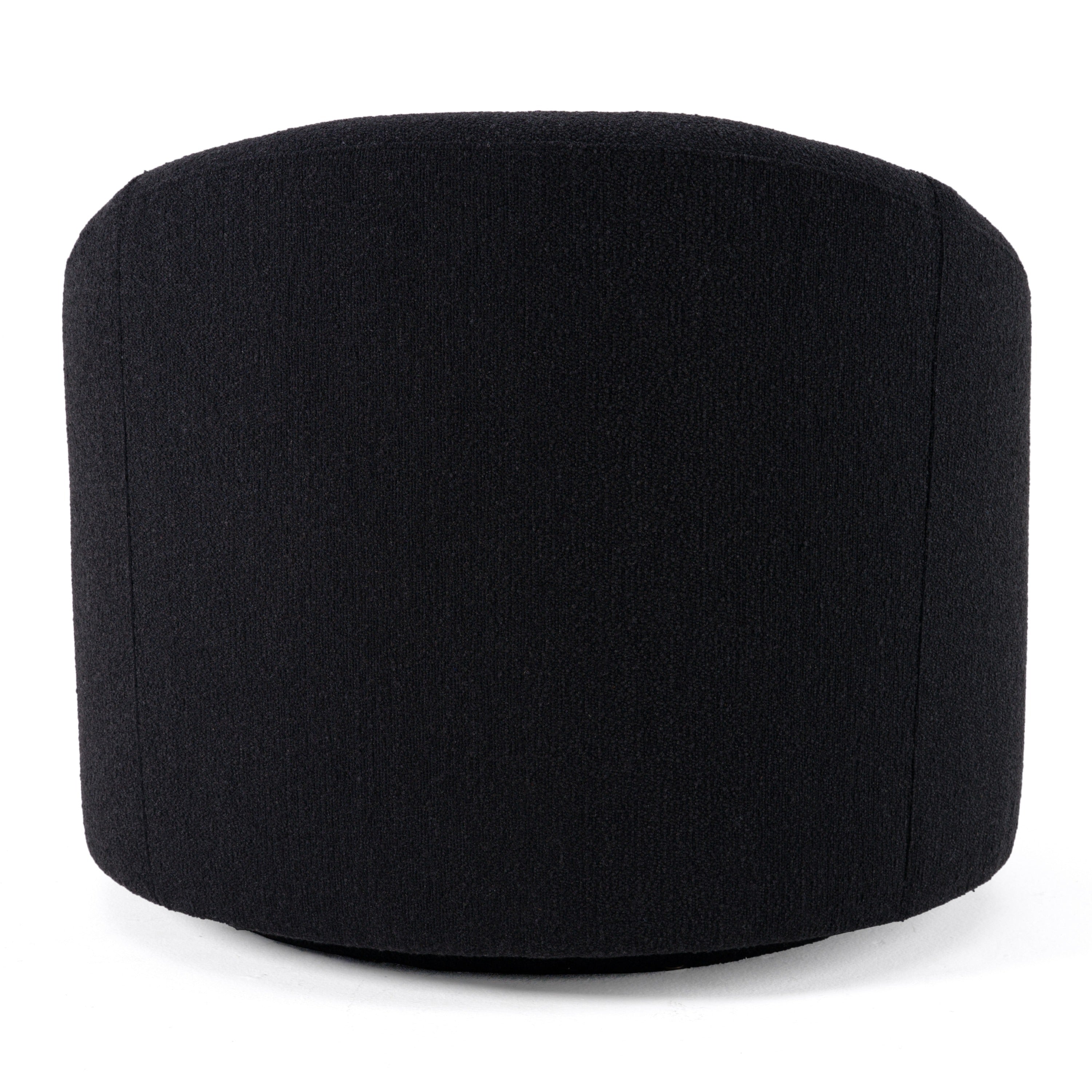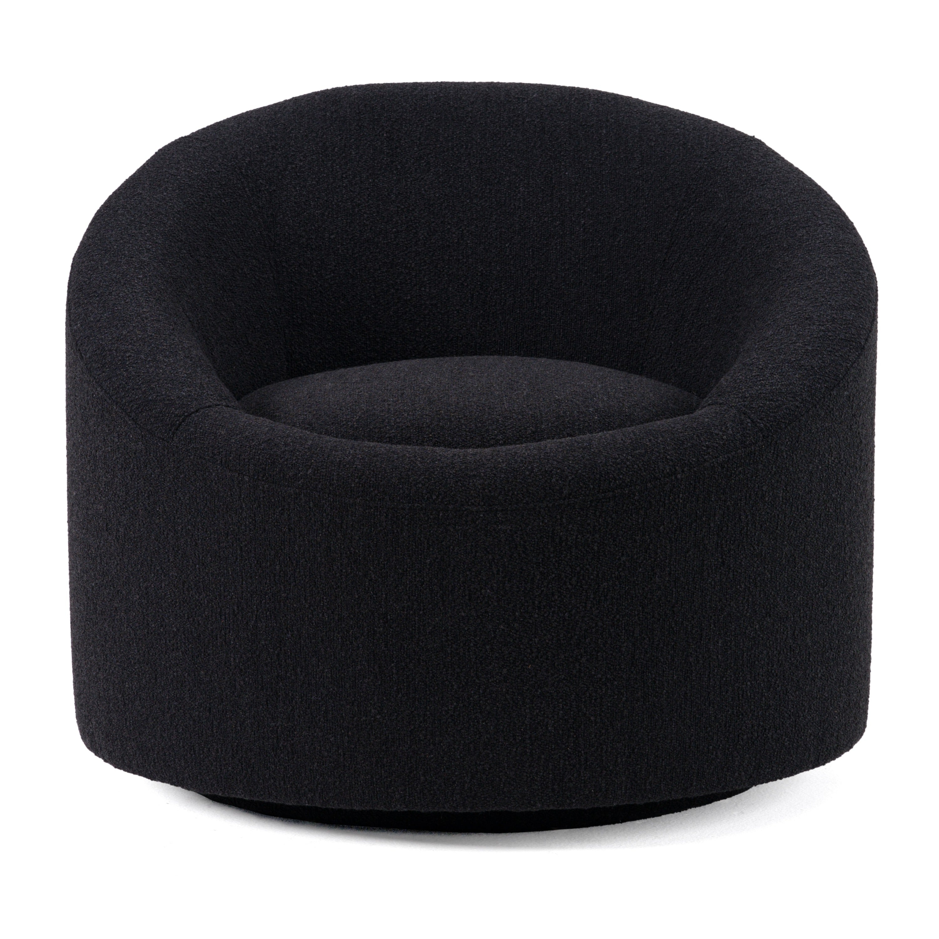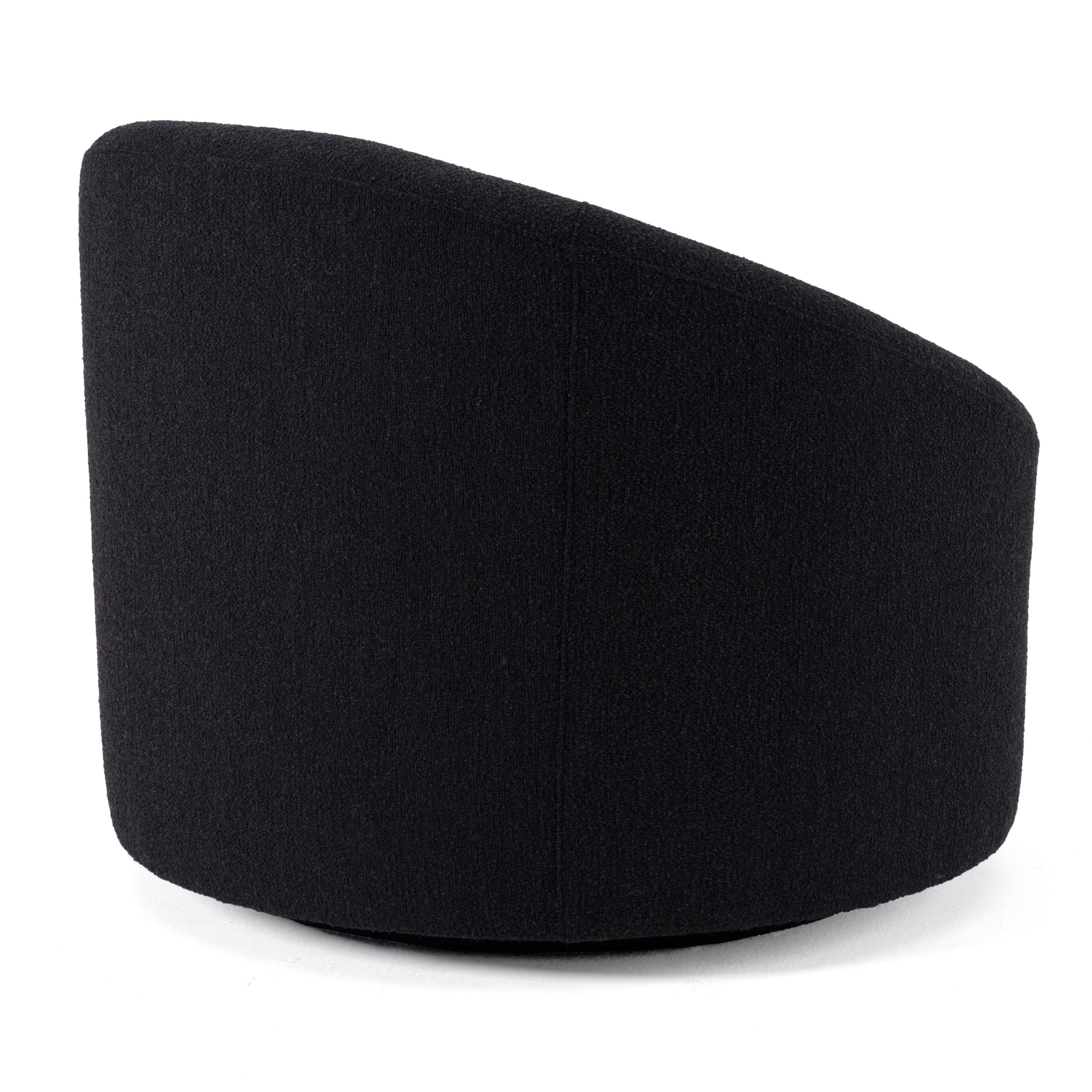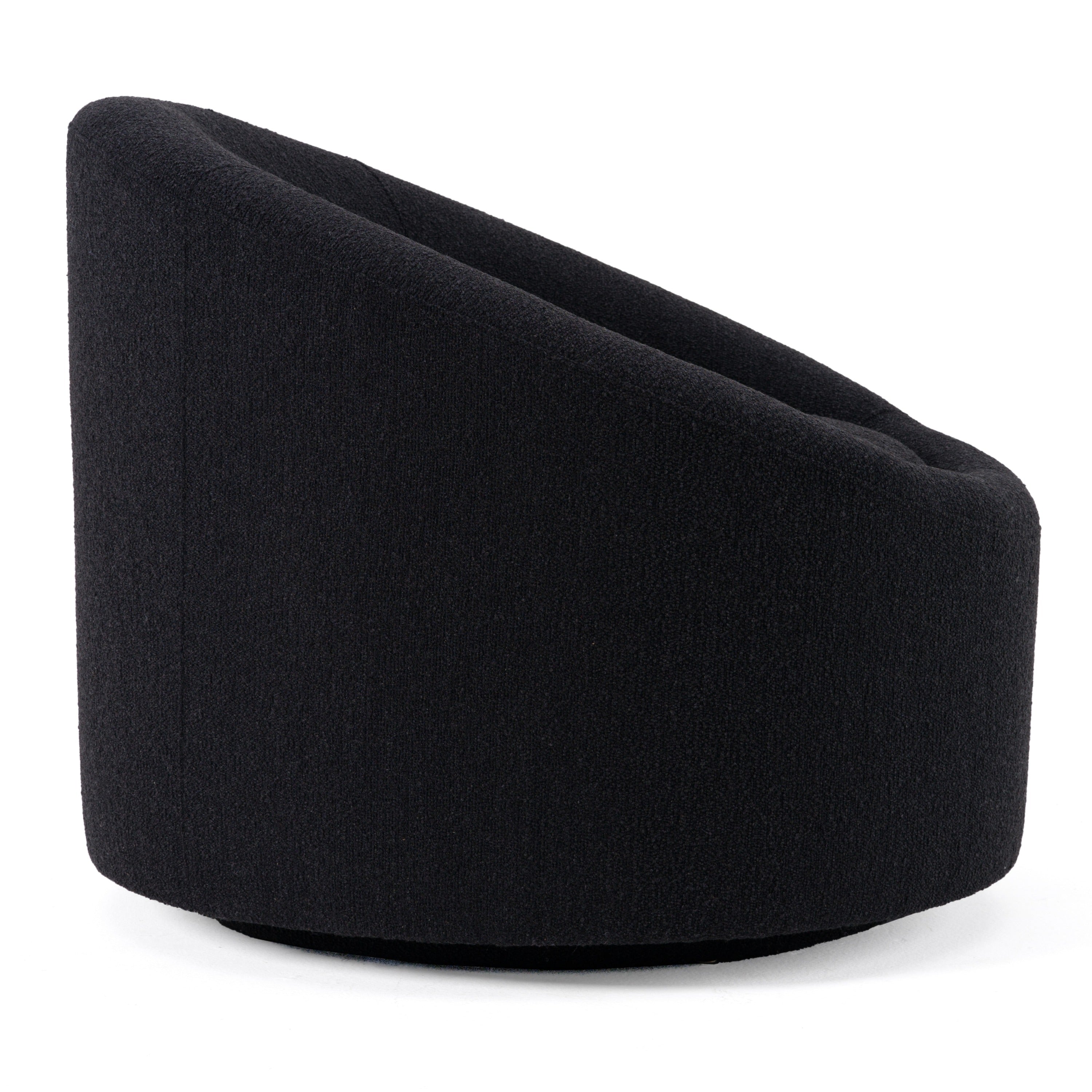 The Modrest Frontier Glam Black Fabric Accent Chair is a bold statement of modern elegance, effortlessly merging luxury and sleek design. Wrapped in rich, deep black fabric, its sculptural form and sophisticated slope arms exude a chic presence. Perfectly cushioned for comfort, this accent piece invites leisurely lounging while serving as a refined focal point in any contemporary living space. It embodies the allure of upscale living, imbuing your home with an air of chic sophistication and timeless style.