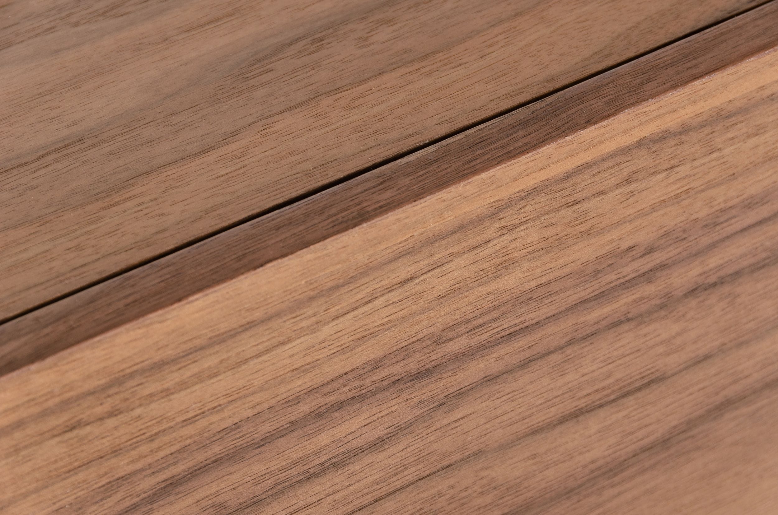The Gilroy Buffet mixes both modernism and luxury with bursts of flowing walnut veneer with hints of unique steel handles and legs. Four medium-sized doors open up to four adjustable shelves that can hold silverware, glassware, and dishes for dinner parties or social gatherings.