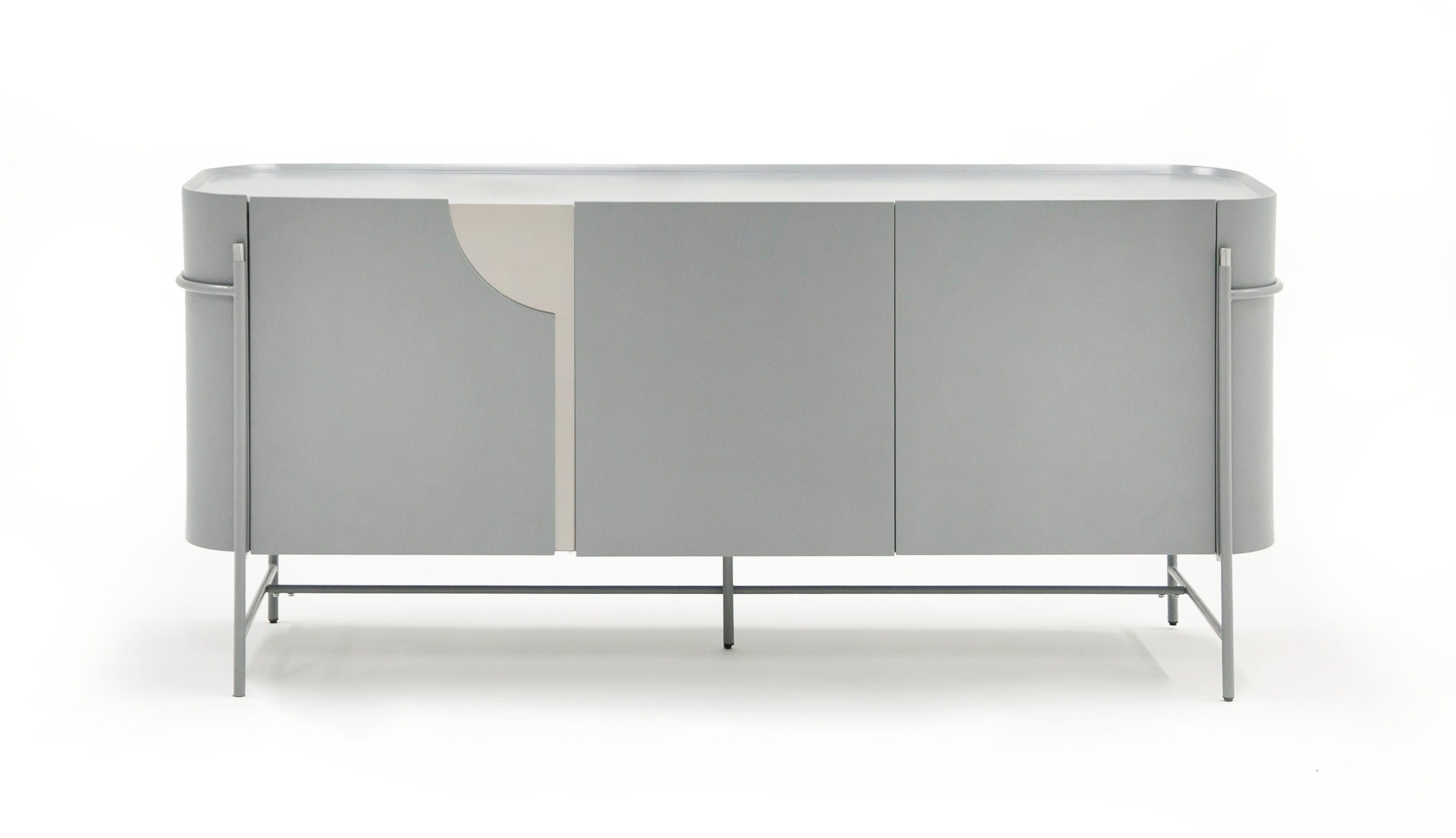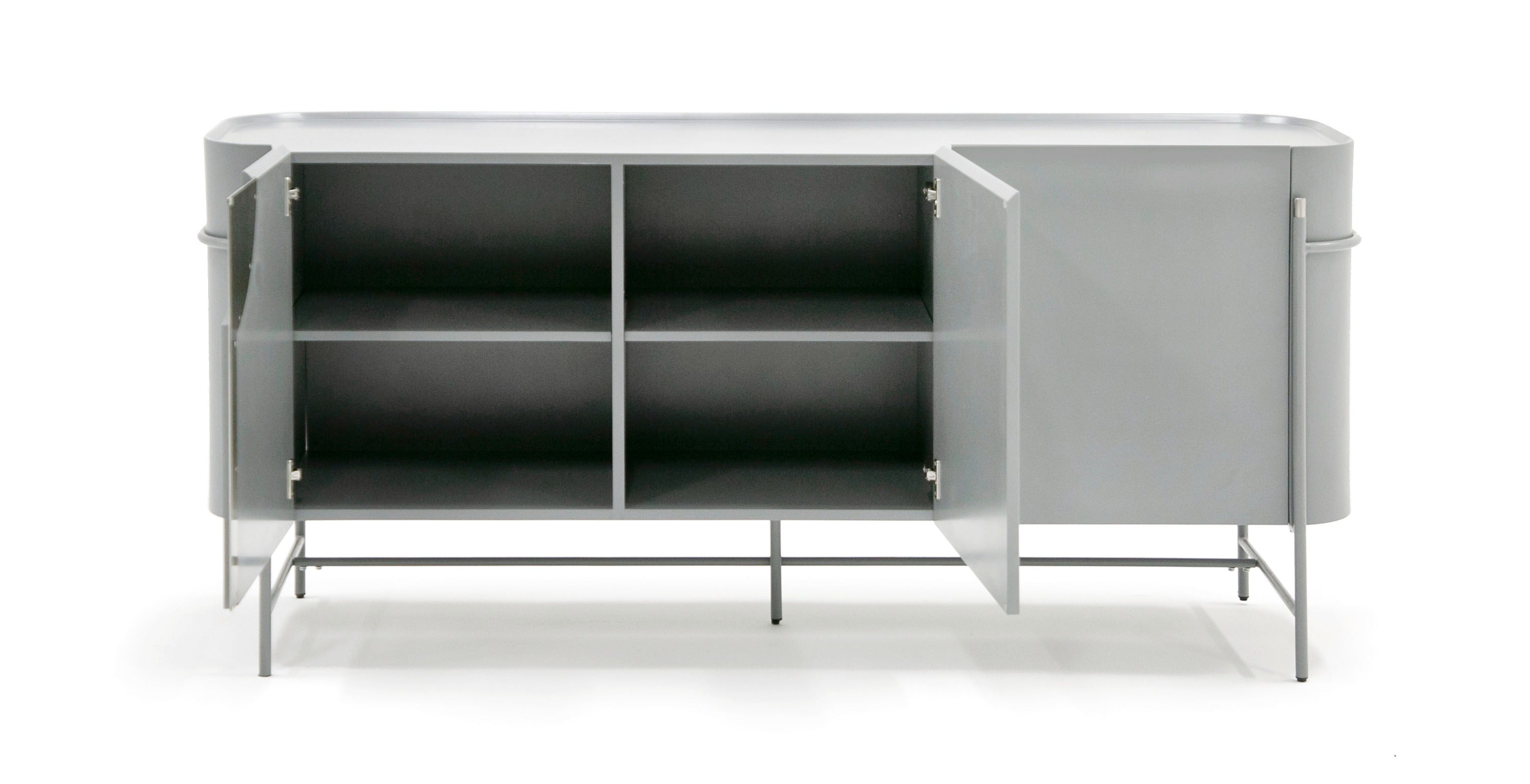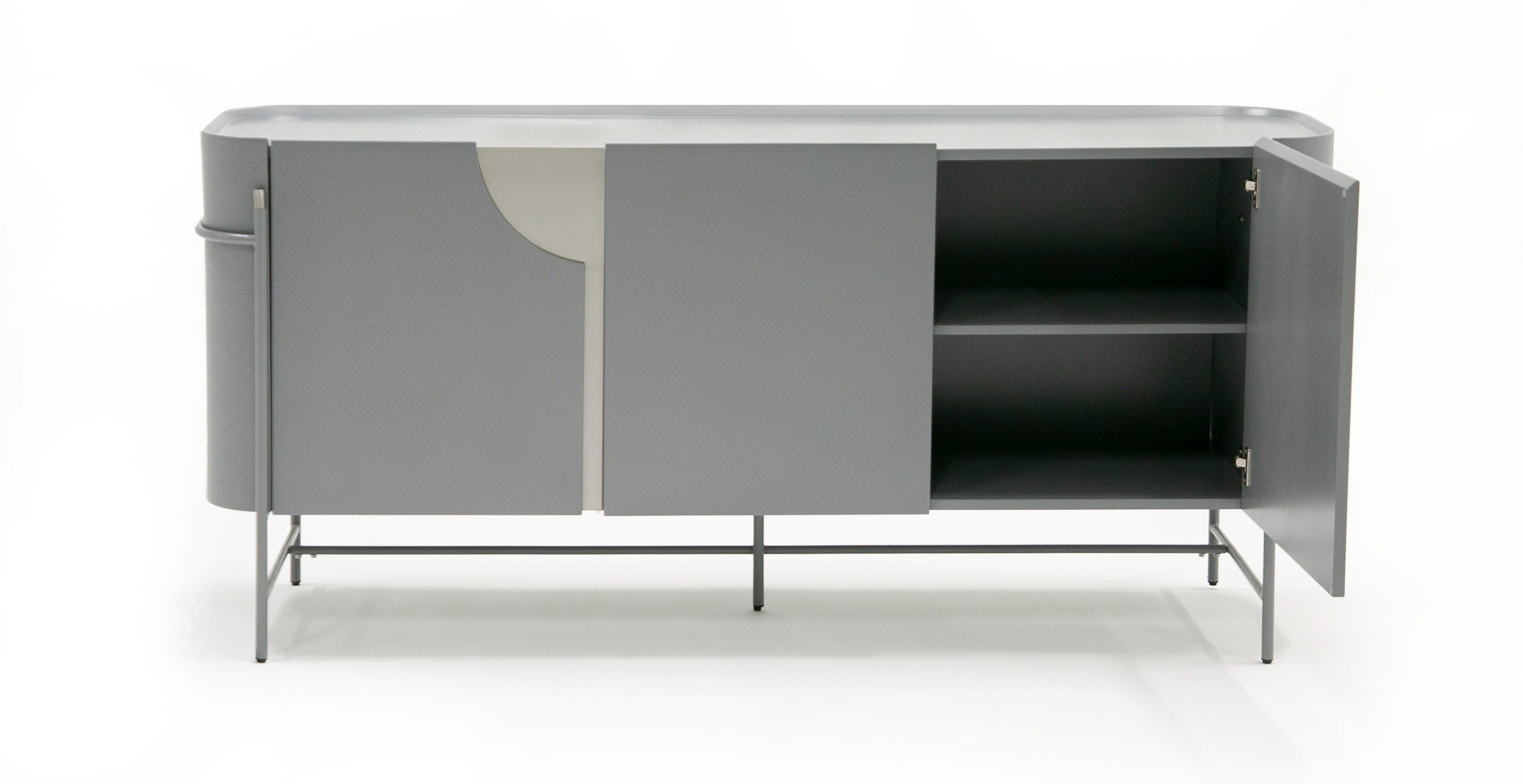 Curved and Minimalistic lines of this Modern Buffet and combination of Matte Grey and shiny metal are extremely impressive and unique.