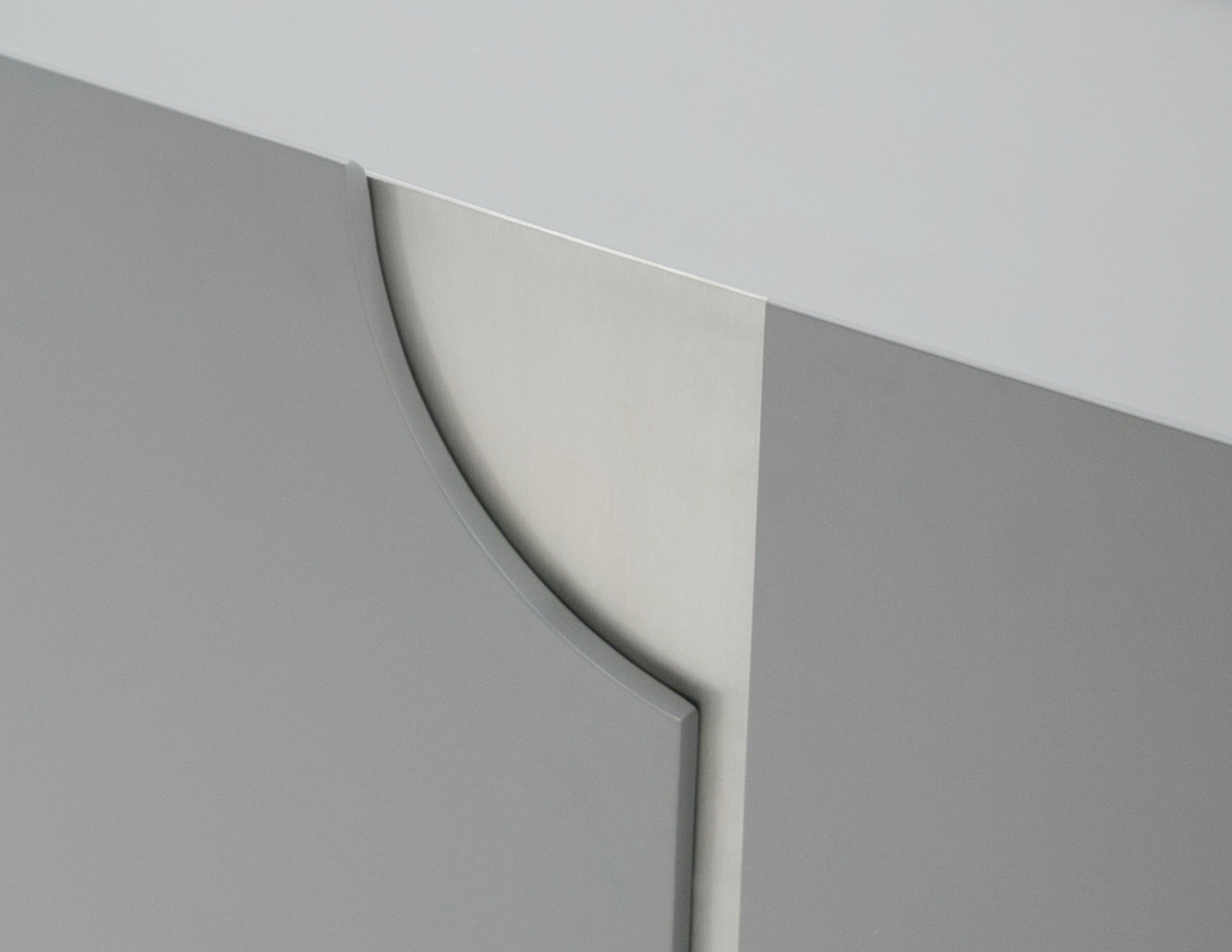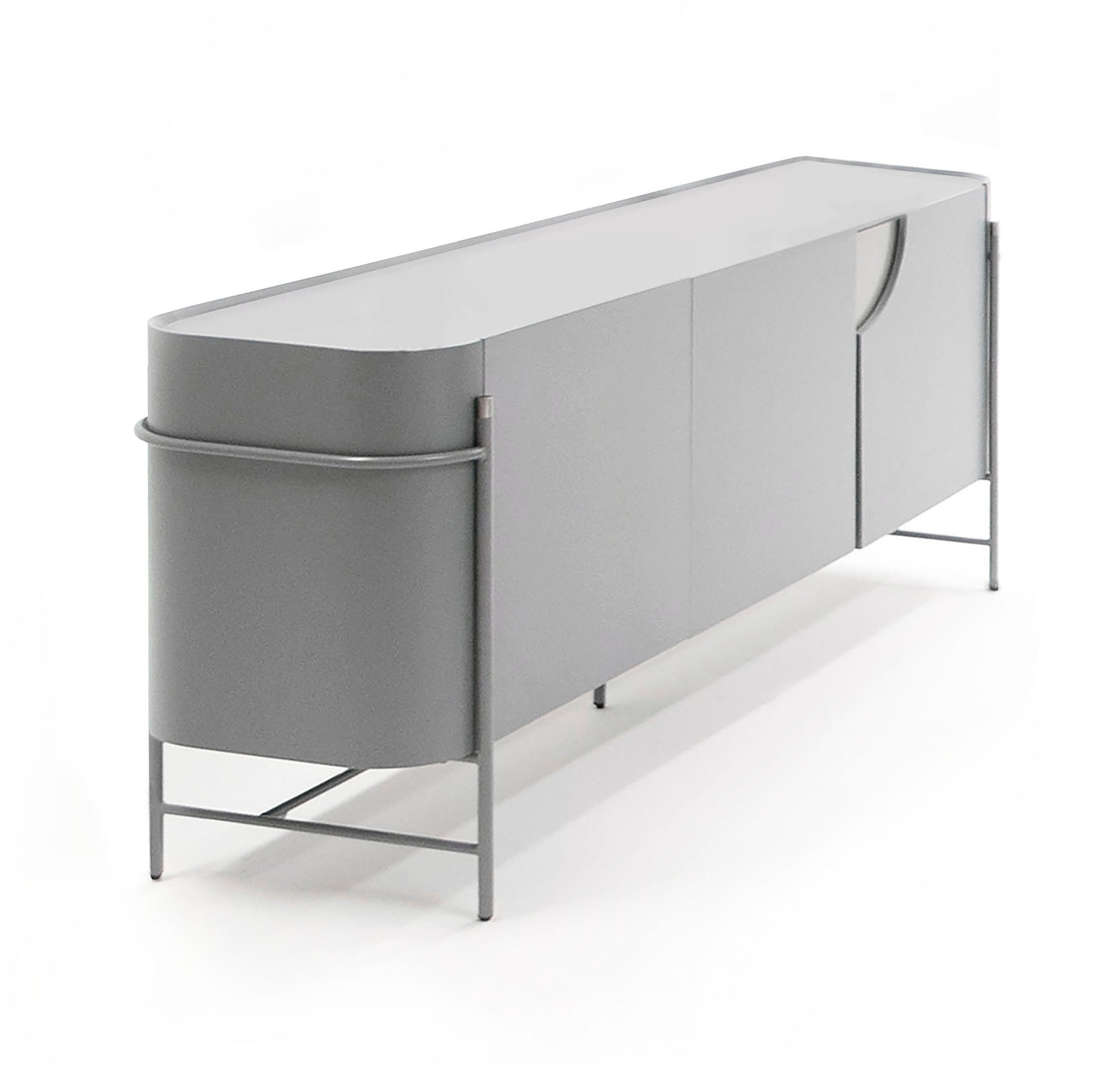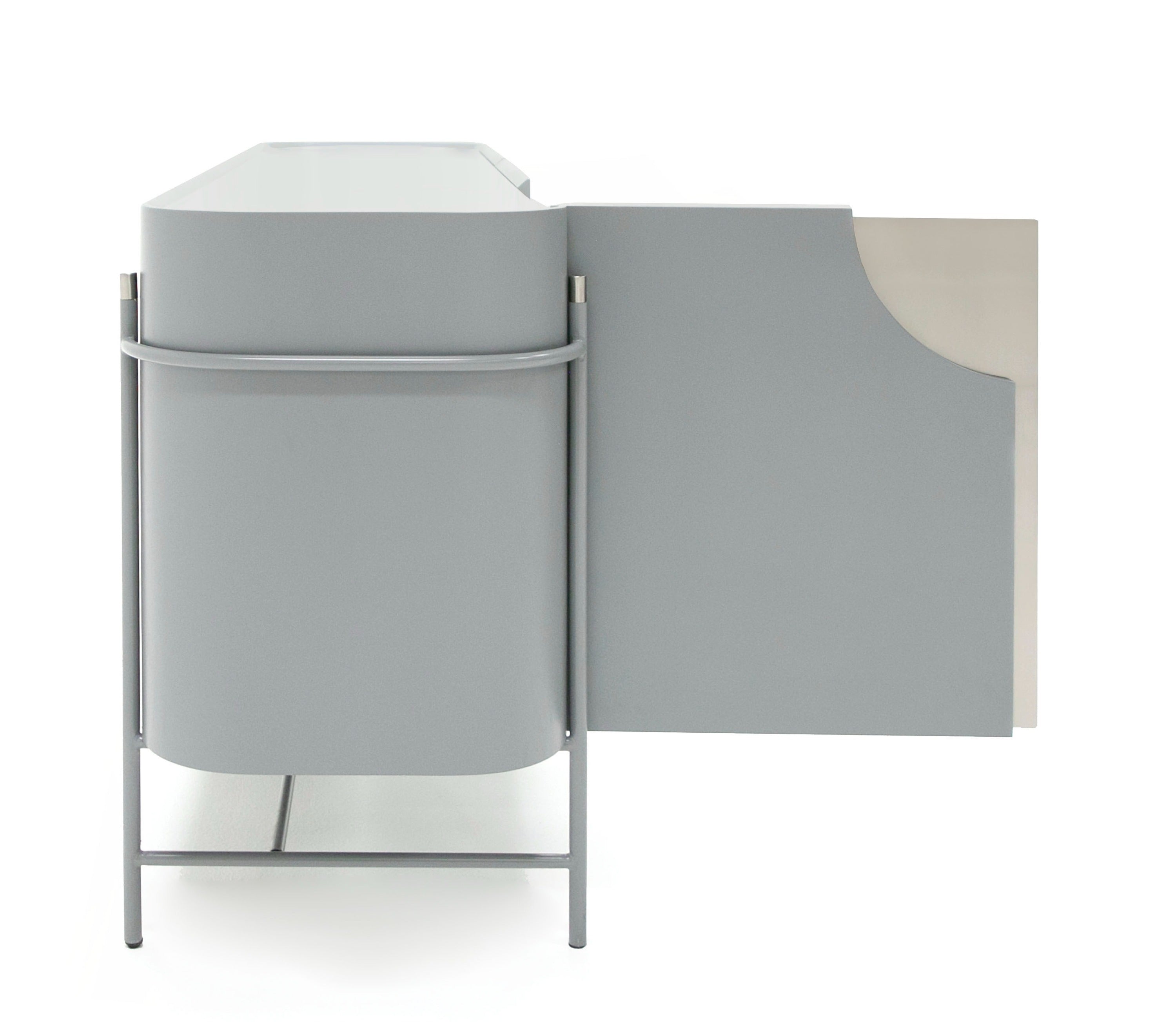 Curved and Minimalistic lines of this Modern Buffet and combination of Matte Grey and shiny metal are extremely impressive and unique.